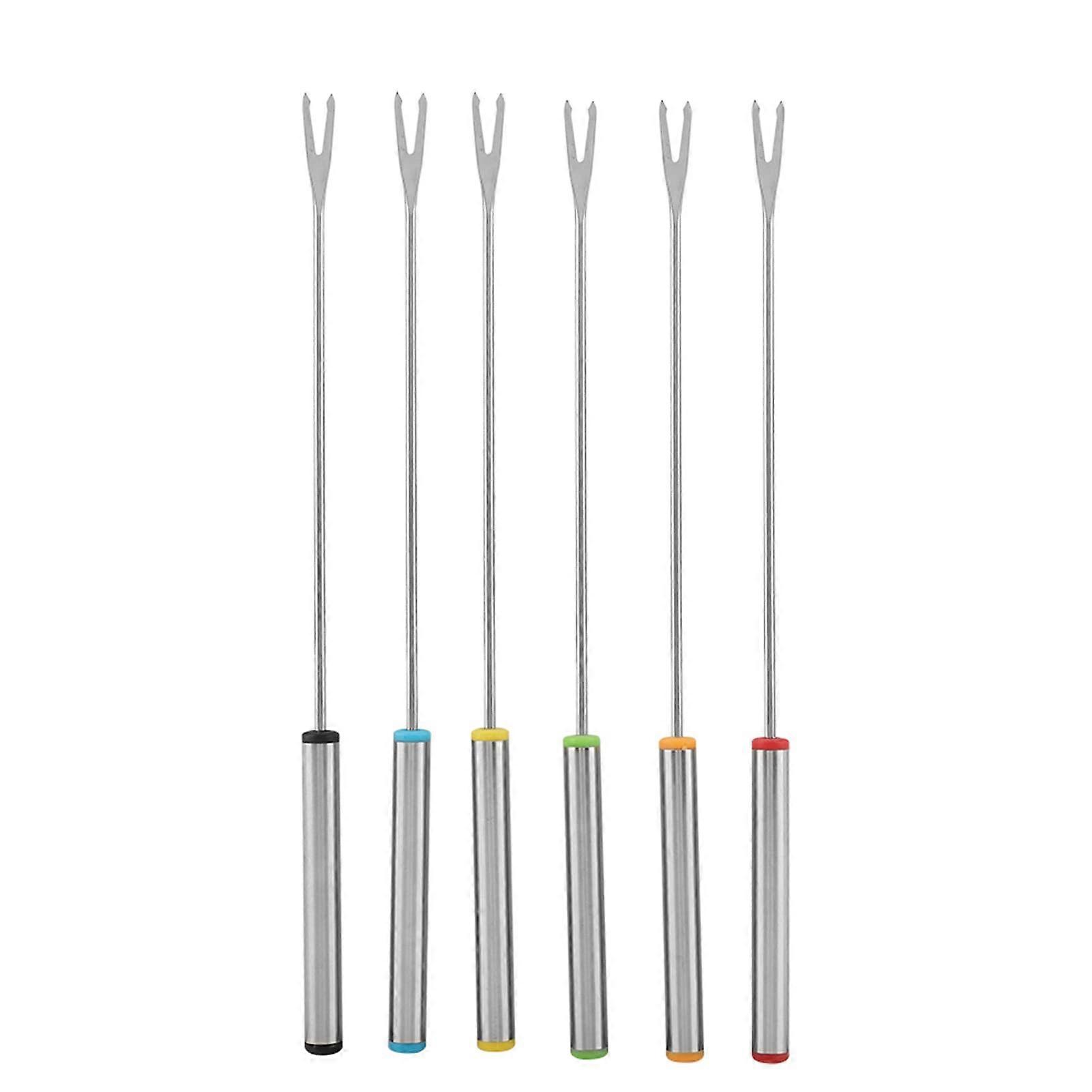 Stainless Steel Fondue Forks Set 6pcs Long Handle Reusable for Chocolate Cheese Dessert