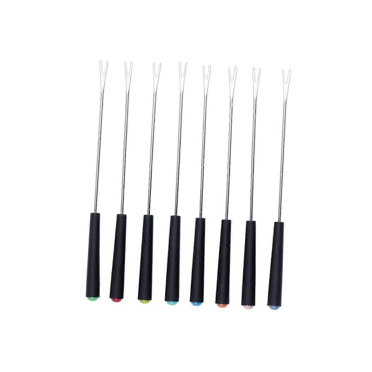 8pcs Stainless Steel Fondue Forks Set with HeatResistant Plastic Handles for Cheese and Hot Pot