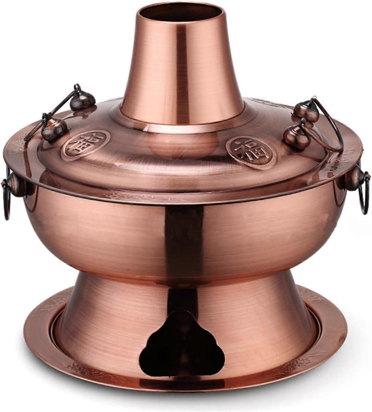 Vintage Copper Chinese Hot Pot Stainless Steel Shabu Shabu Soup Pot for 27 People 34cm