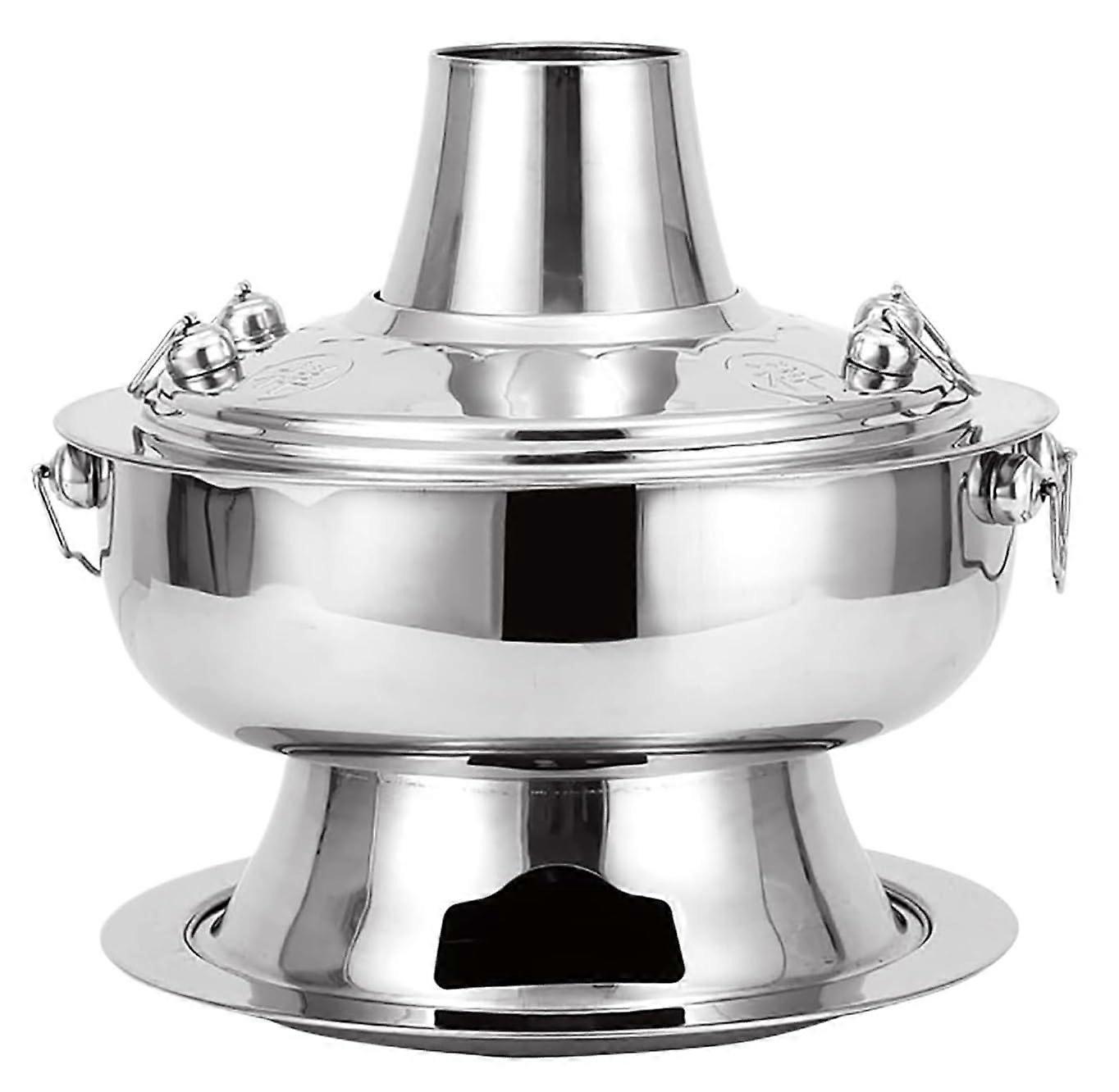 Chinese Hot Pot Stainless Steel Shabu Shabu Pot with Traditional Charcoal Heating for Family Copper Gold 34cm Silver 36cm