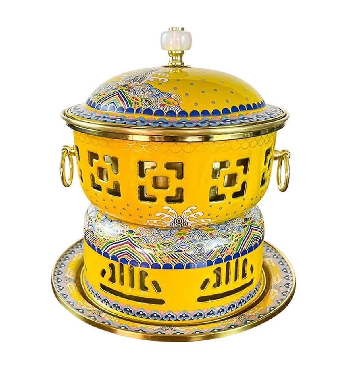 Pure Copper Chinese Hot Pot Stove Cloisonne Design Fast Heat Conduction Small Household Yellow 22cm