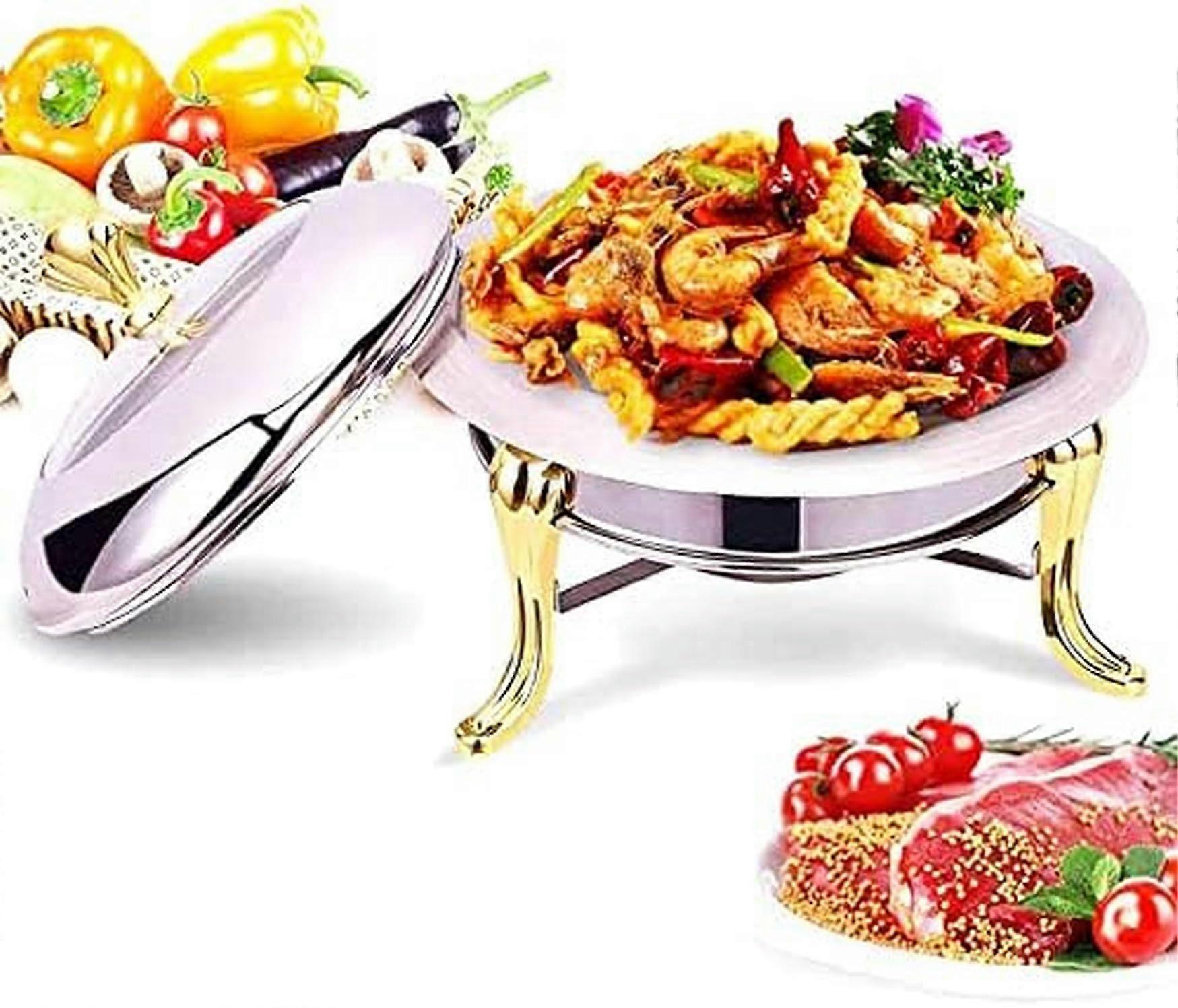 Round Stainless Steel Chafing Dish with Lid and Fuel Grid for Buffet Catering, Mirror Finish