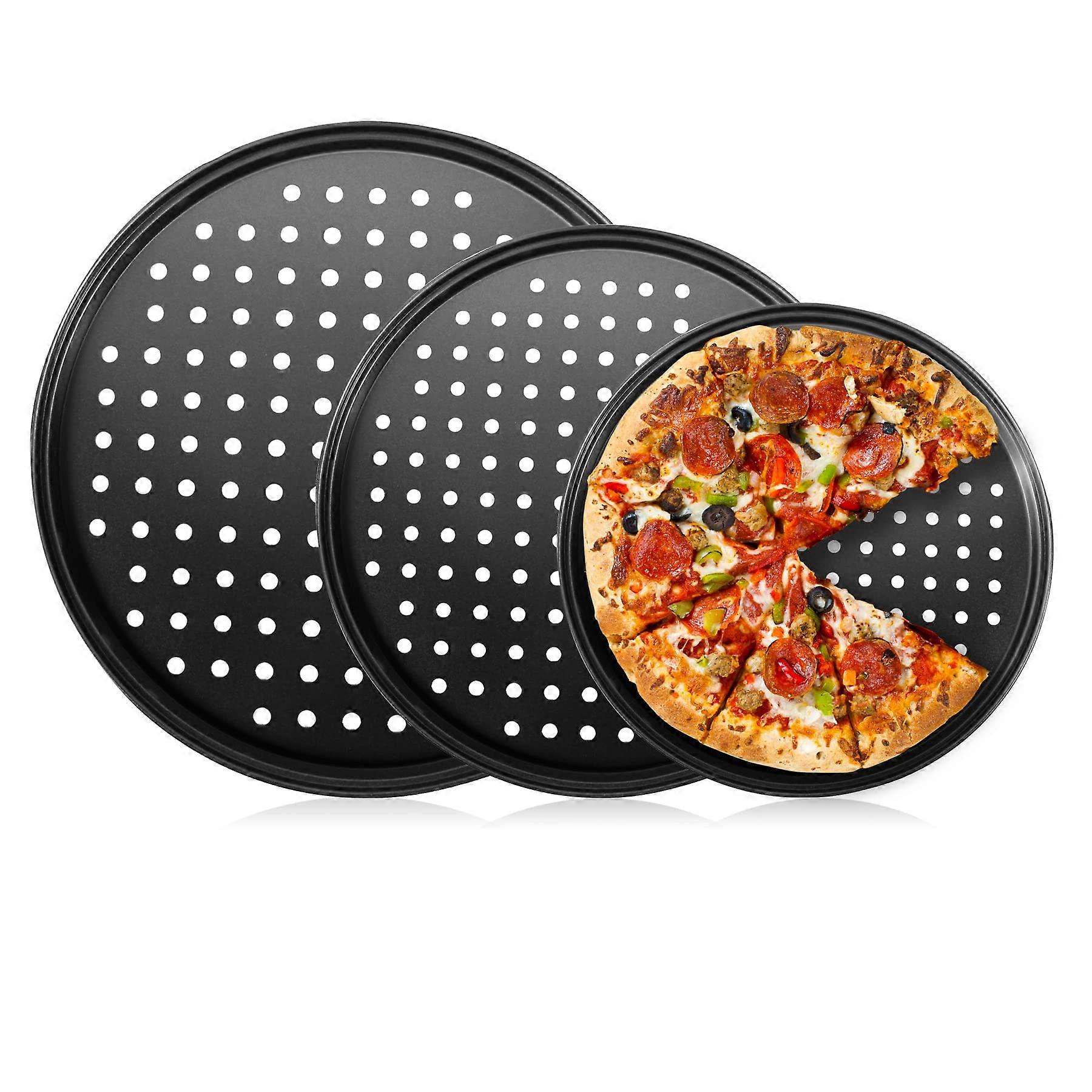 Nonstick Pizza Pan Set with Holes, Carbon Steel Round Crisper Tray 9 11 12 Inch for Oven Baking