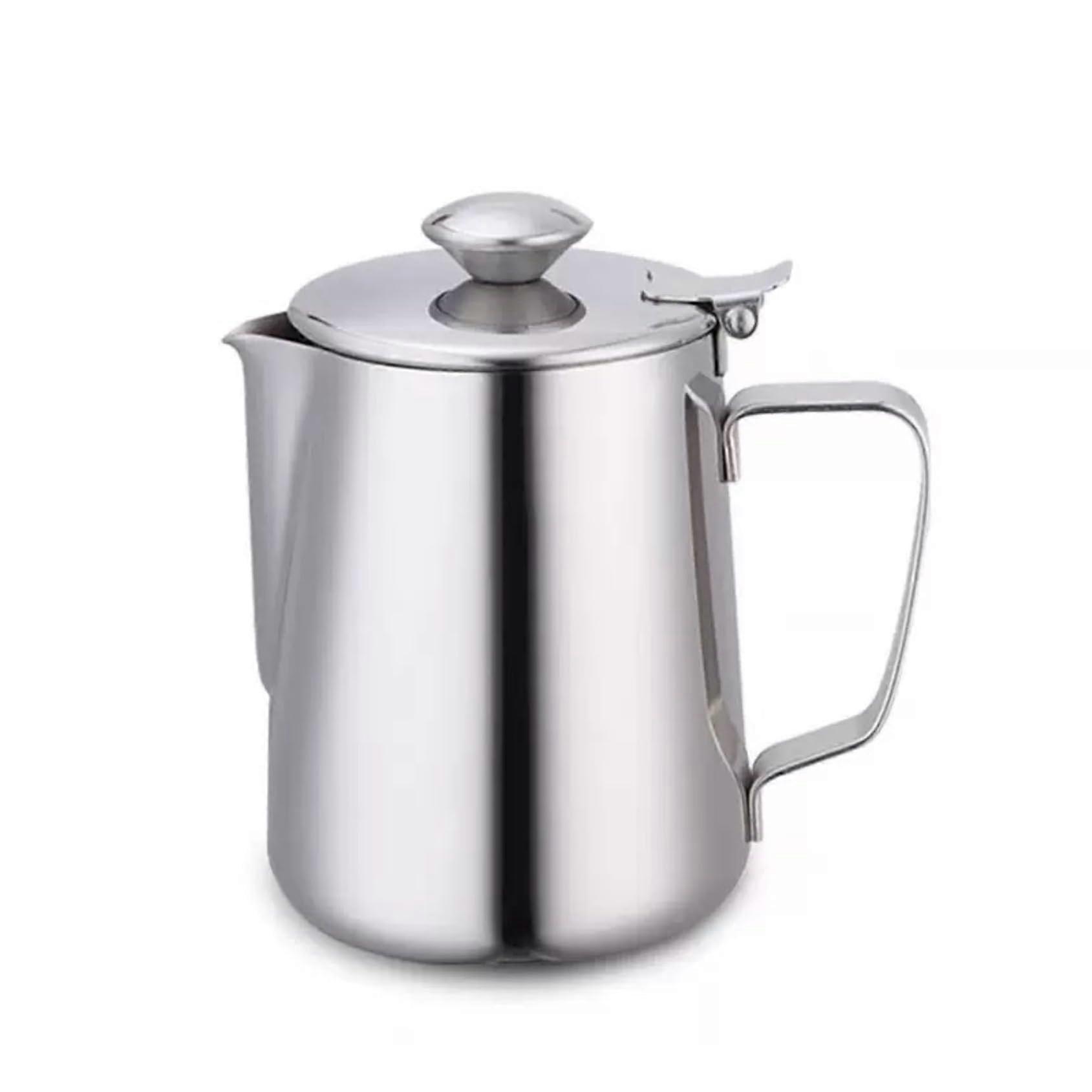600ml Stainless Steel Milk Frothing Pitcher with Lid for Latte Art and Barista Coffee
