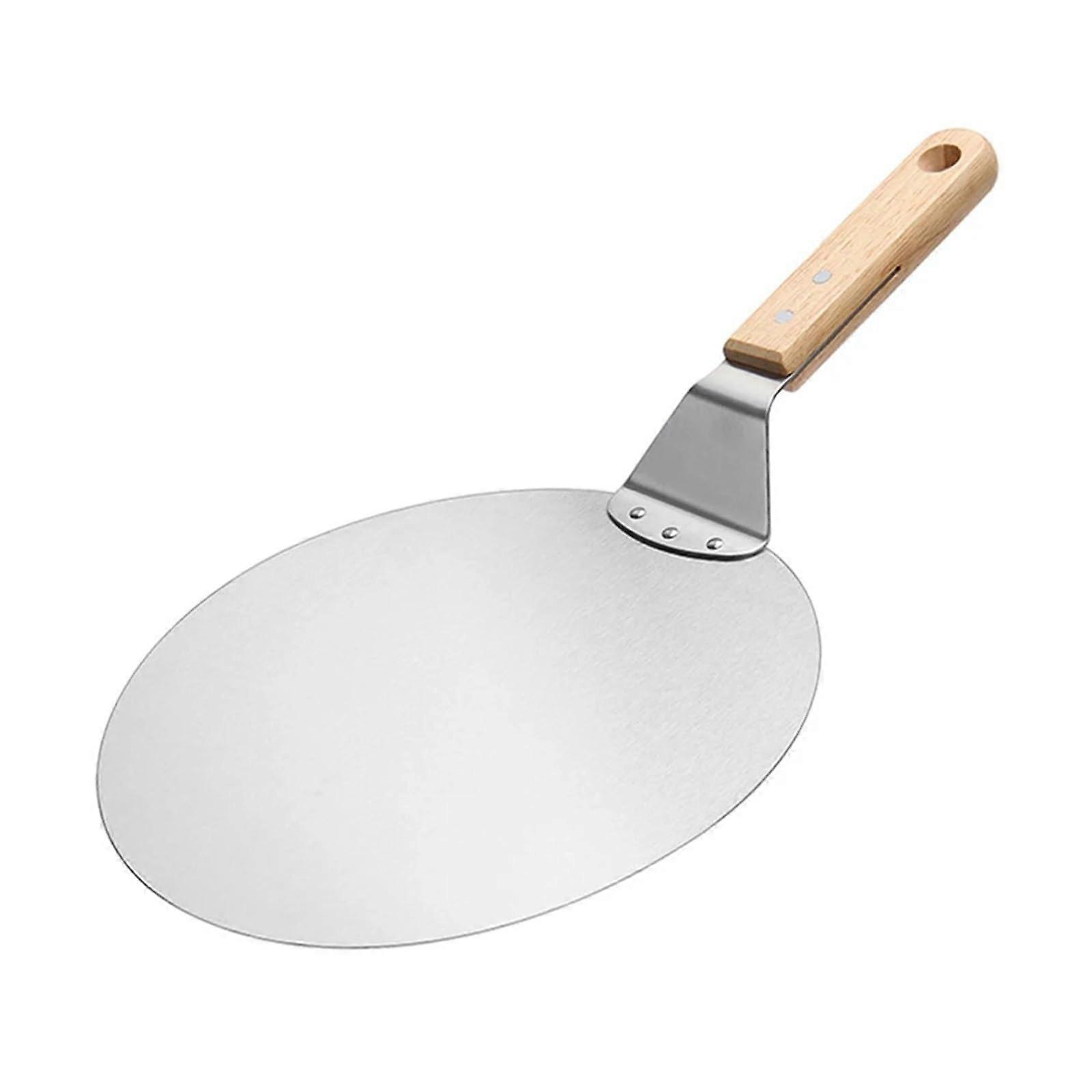 Stainless Steel Pizza Peel with Wooden Long Handle, Large Round NonStick Paddle for Baking