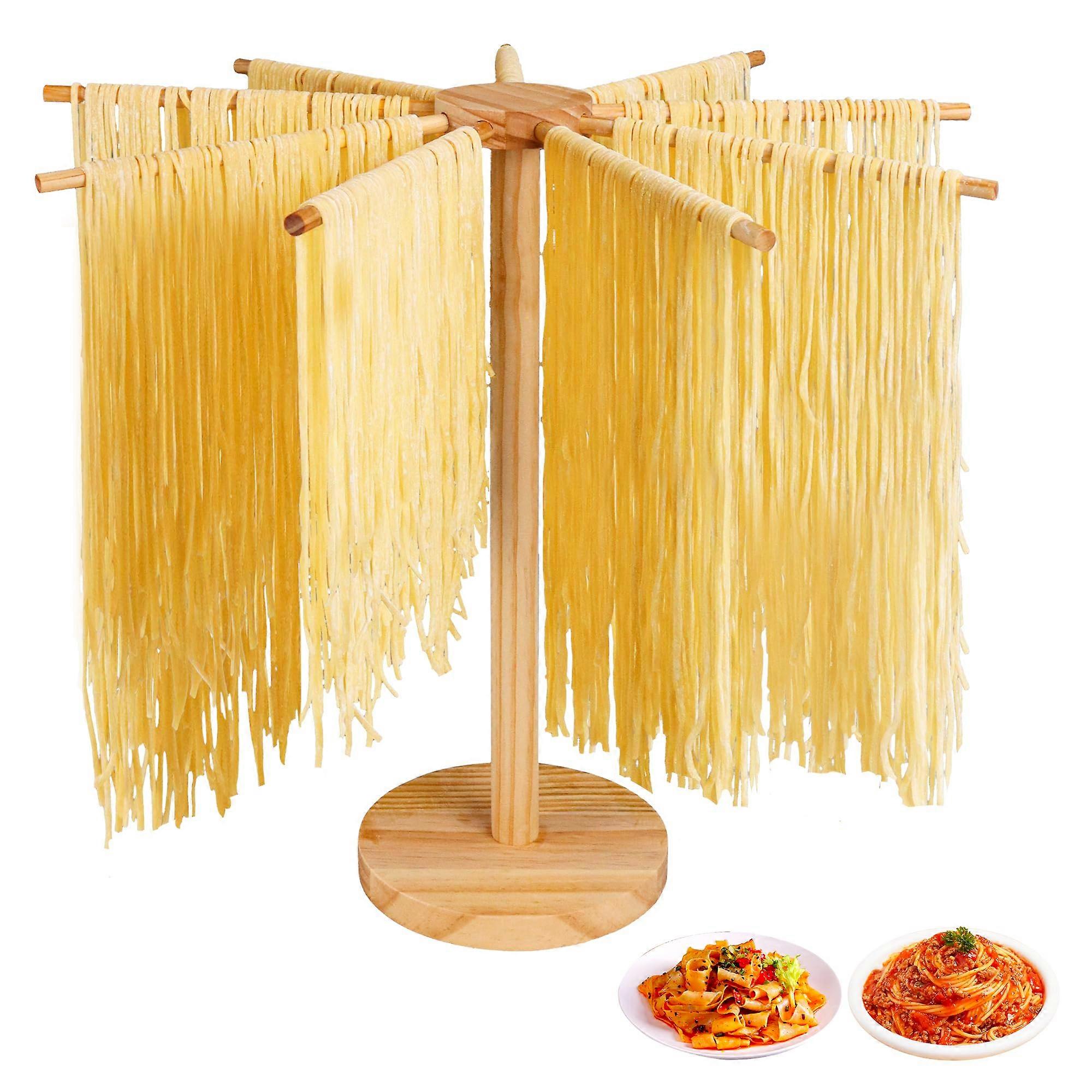 Collapsible Wooden Pasta Drying Rack with Transfer Wand and 9 Arms for Homemade Noodles