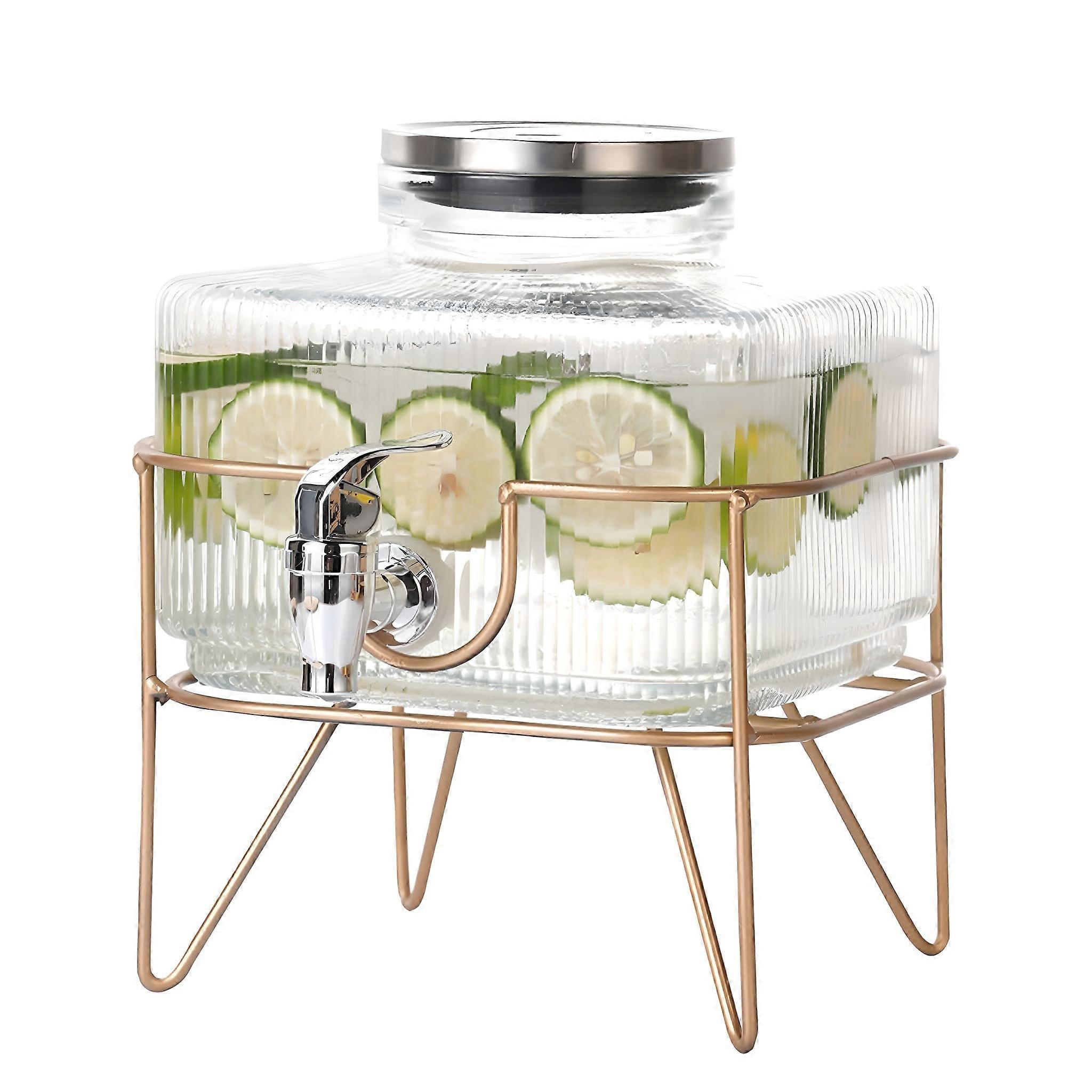 Glass Drink Dispenser with Tap, 3 Liter Glass Beverage Dispenser with NoDrip Spigot and Elegant Stand