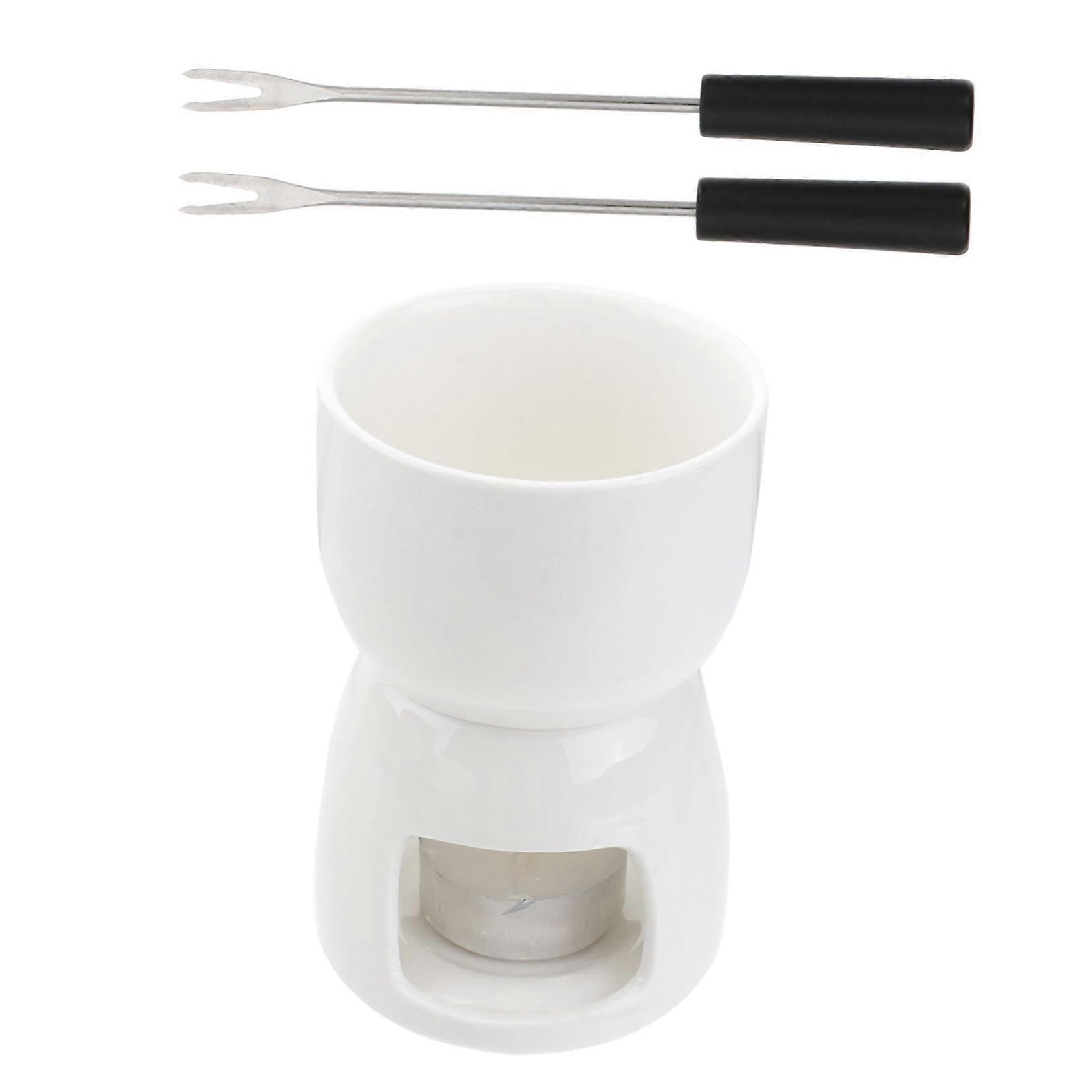 Chocolate Fondue Set Ceramic Melting Pot with Tea Light Candle, Forks, StainResistant EasyClean, Random Color