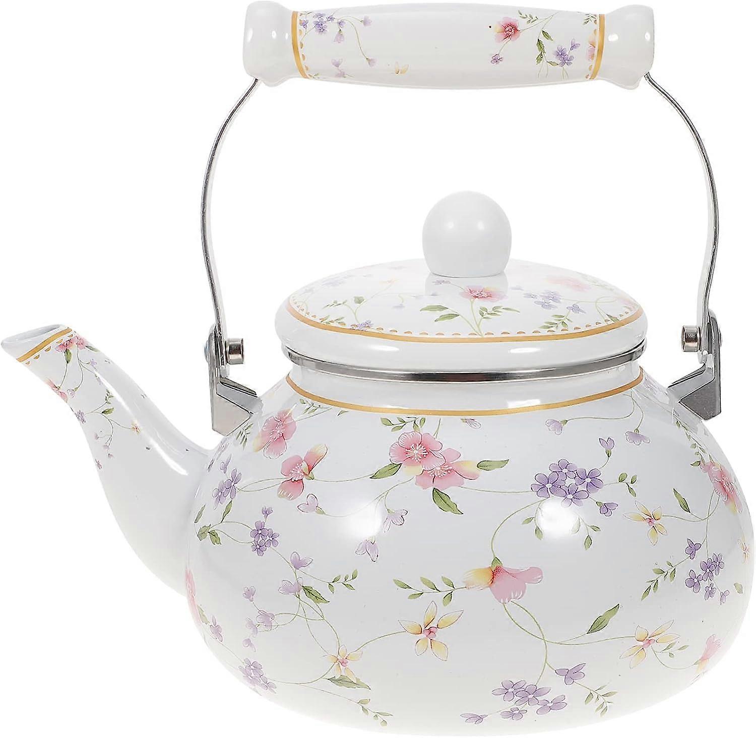 Large Enamel Teapot with Ceramic Handle, Floral Porcelain Tea Kettle for Stovetop 15000ml