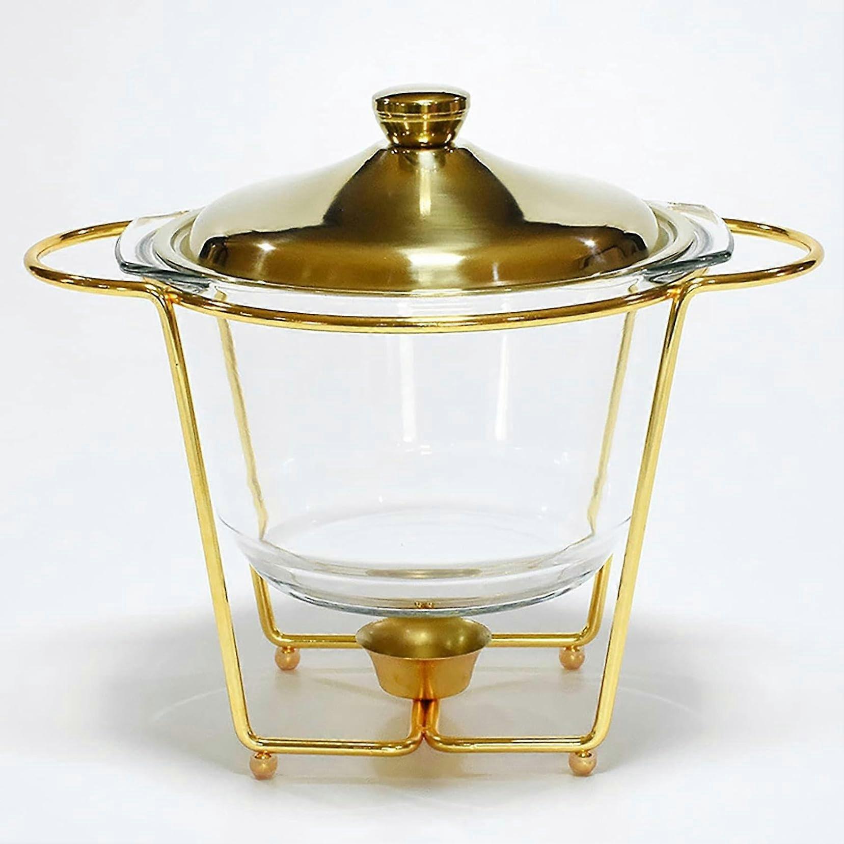 4 Qt Stainless Steel Chafing Dish with Visible Glass Pan, Gold Buffet Server for Catering Events