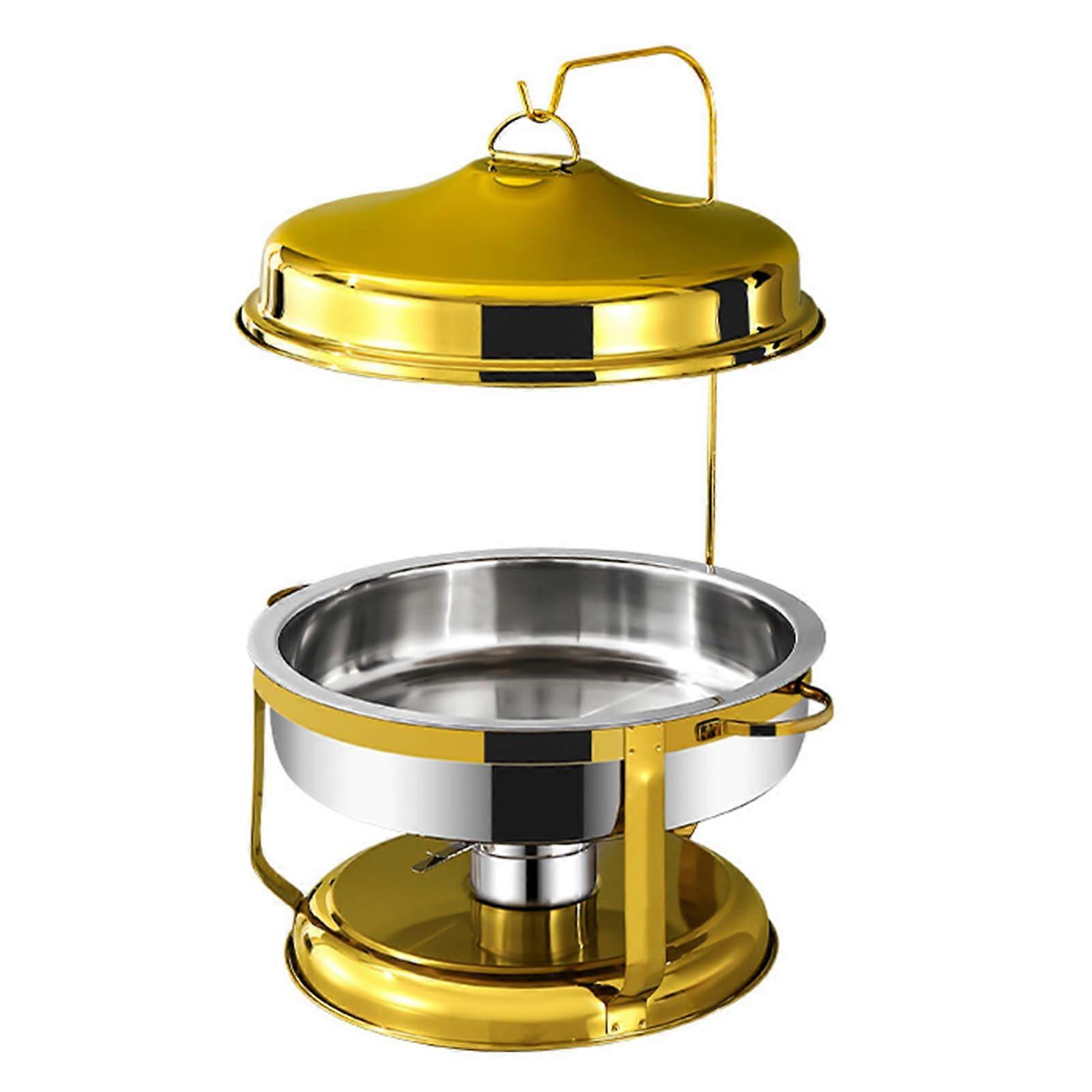 Round Stainless Steel Chafing Dish Set with Gold Finish, Buffet Catering Warmer for Weddings and Parties
