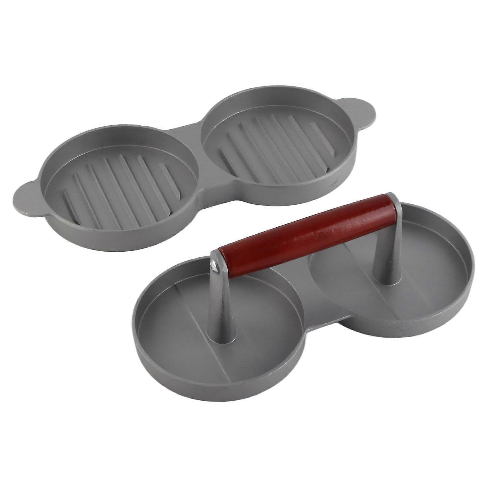 Aluminum Alloy Double Burger Press with Nonstick Surface and Wooden Handle for Beef Chicken Turkey Pork