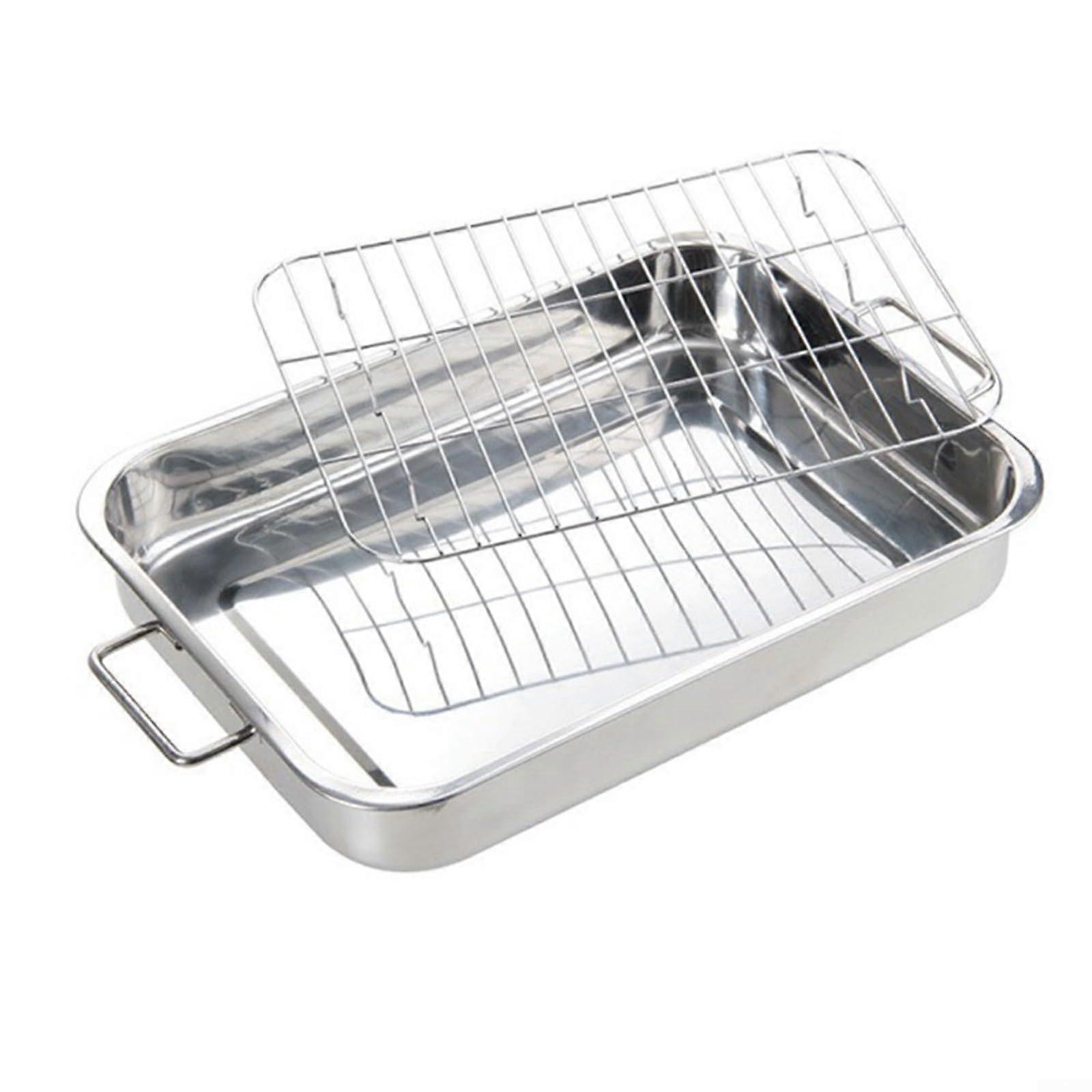 Stainless Steel Roasting Pan with Rack, Large Bakeware Tray 42x32cm, Even Heat and Lift Handles
