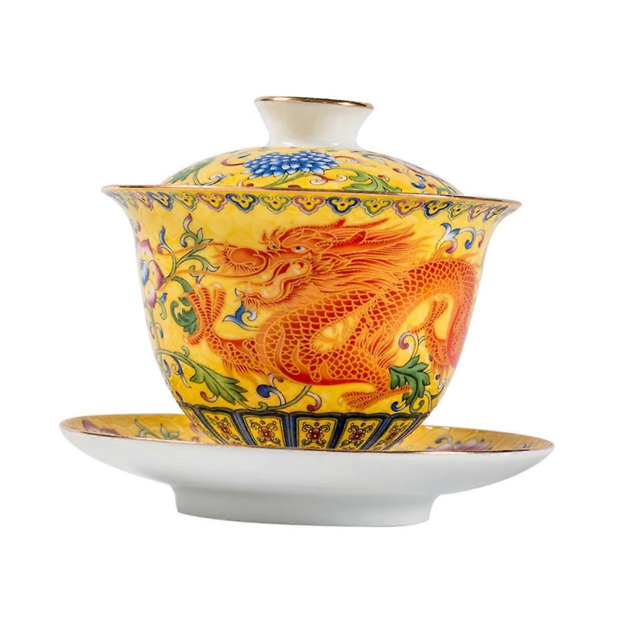 Chinese Gaiwan Tea Set Ceramic Cup with Lid and Saucer Elegant Chinese Style for Tea Ceremony