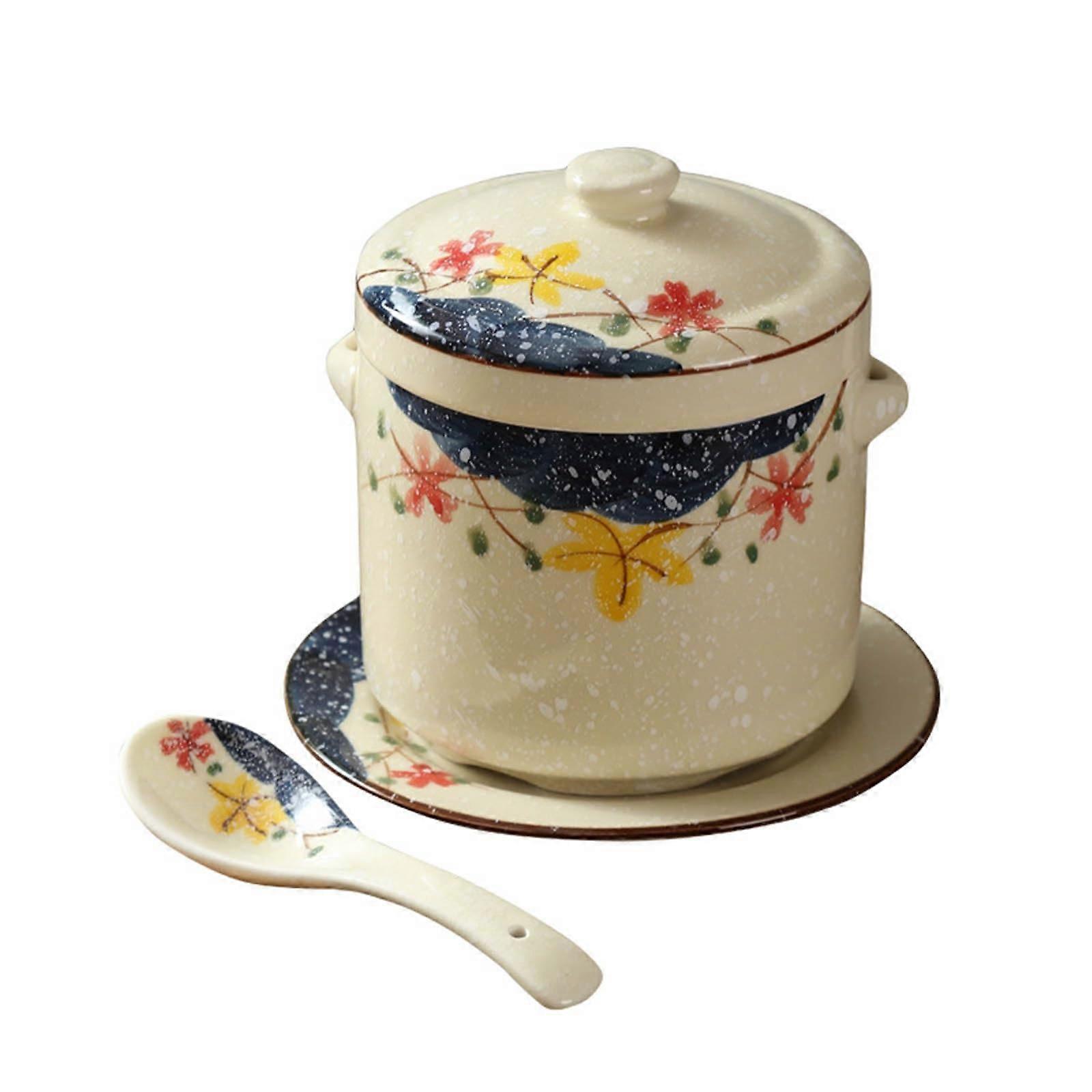 Ceramic Soup Pot with Lid 1200ml Japanese HeatResistant Stew Bowl Yellow Glazed Easy Clean