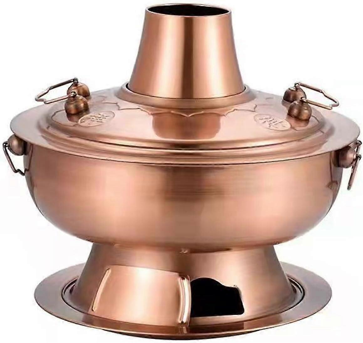 Adjust heat for versatile cooking Designed for meat and vegetable hot pots, with precise heat control to prevent burning. Also suitable for cheese or chocolate and dessert fondues when heat is adjusted carefully. Helps you tailor simmering and melting to each ingredient for consistent results. Easy to clean and maintain Ringshaped pot with a center tube that extends to the lid, functioning as a chimney for briquettes. Deepened pool collects ash and keeps the interior cleaner between uses. Removable storage component simplifies cleaning and makes storage convenient. quality and materials This style of pot remains in Asian countries and is available in aluminum or stainless steel, compatible with gas or electric heat sources. Copper versions offer the hot pot performance, with heat conduction and quick, even distribution across the surface. Antique design with practical features Inherits classic, ornamental styling for an elegant table presence. Smooth walls are made of quality foodgrade stainless steel. Large firing area; just add coals. Bottom floor air outlet design supports efficient airflow for steady heating.