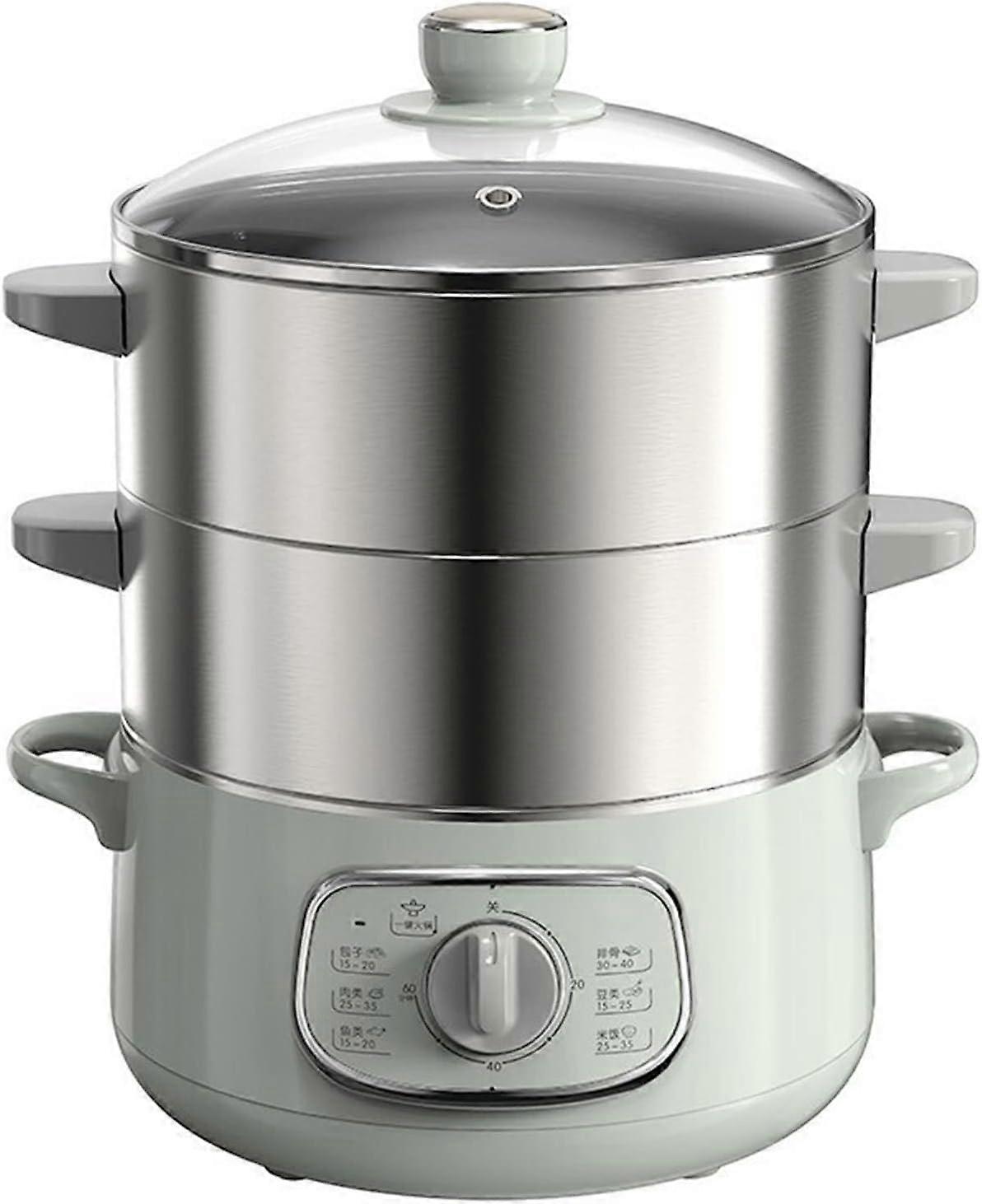 Electric Food Steamer 10L Stainless Steel Double Layer Fast Heating with Timer and Glass Lid