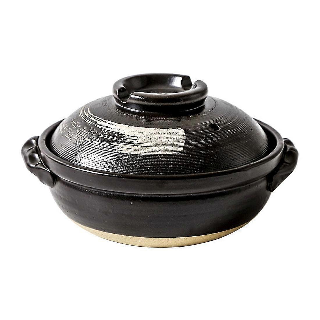 Large Black Ceramic Casserole Dish with Lid, Japanese Donabe Pot for Stews and Rice, BS/B/M B L