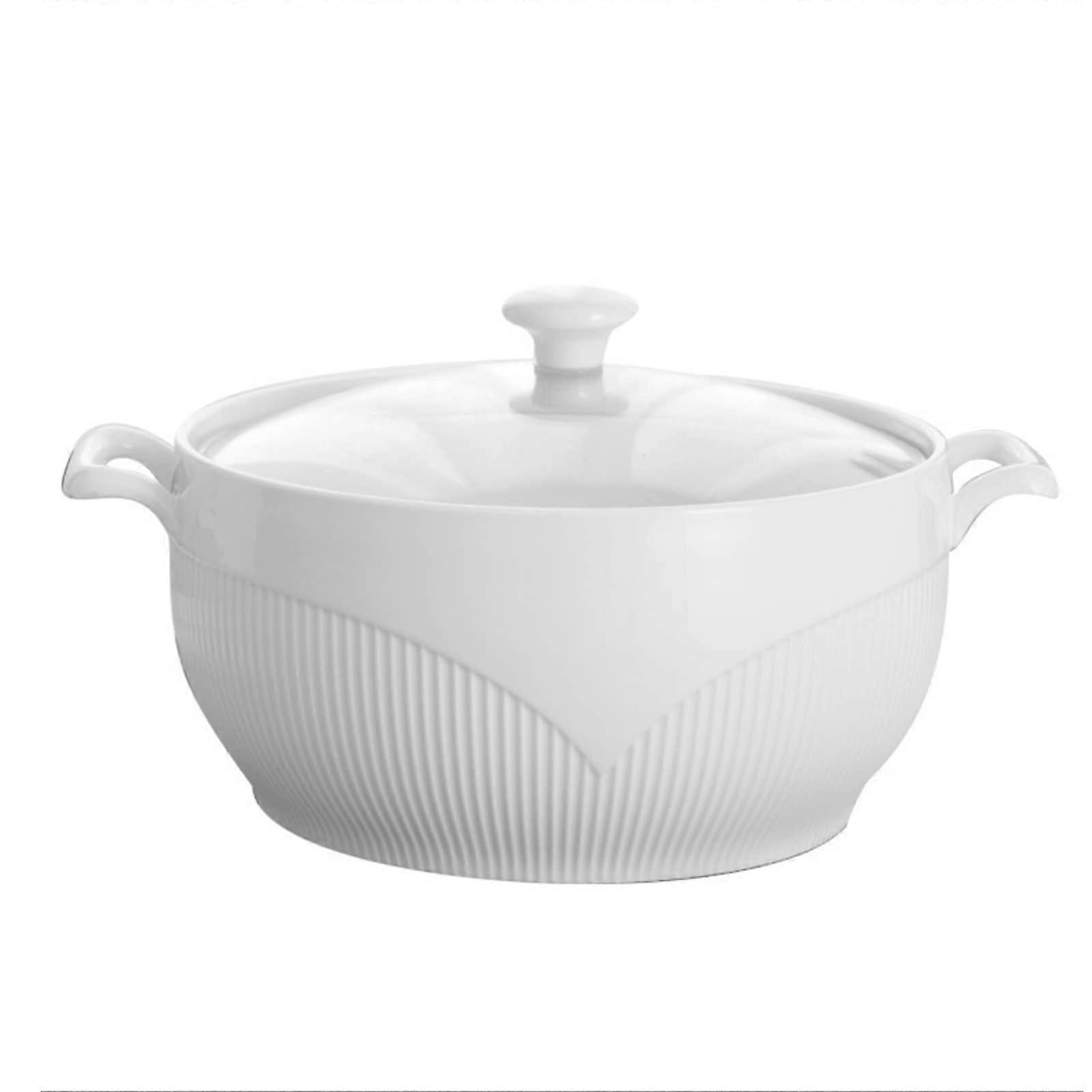 Large Ceramic Soup Pot with Lid, White Casserole Dish with Gold Rim for Even Heat Cooking