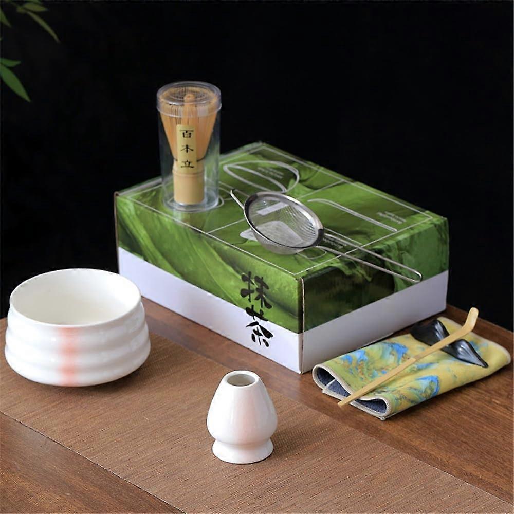 Japanese Matcha Tea Set 7 Pcs Handmade Ceramic Bowl Whisk Scoop Sifter Caddy for Tea Ceremony