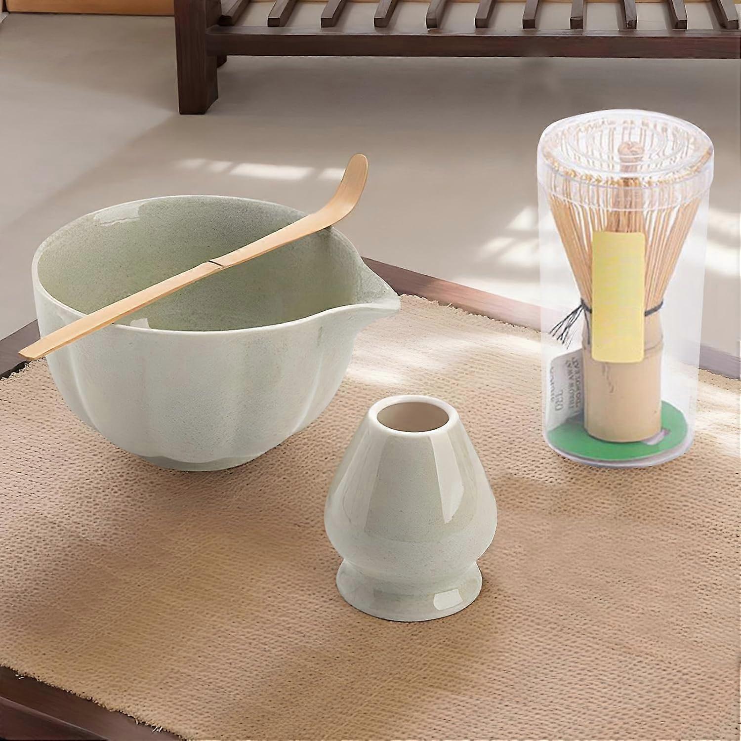 Matcha Tea Set with Bowl Whisk Scoop Holder, Authentic Ceremony Kit for Home Brewing