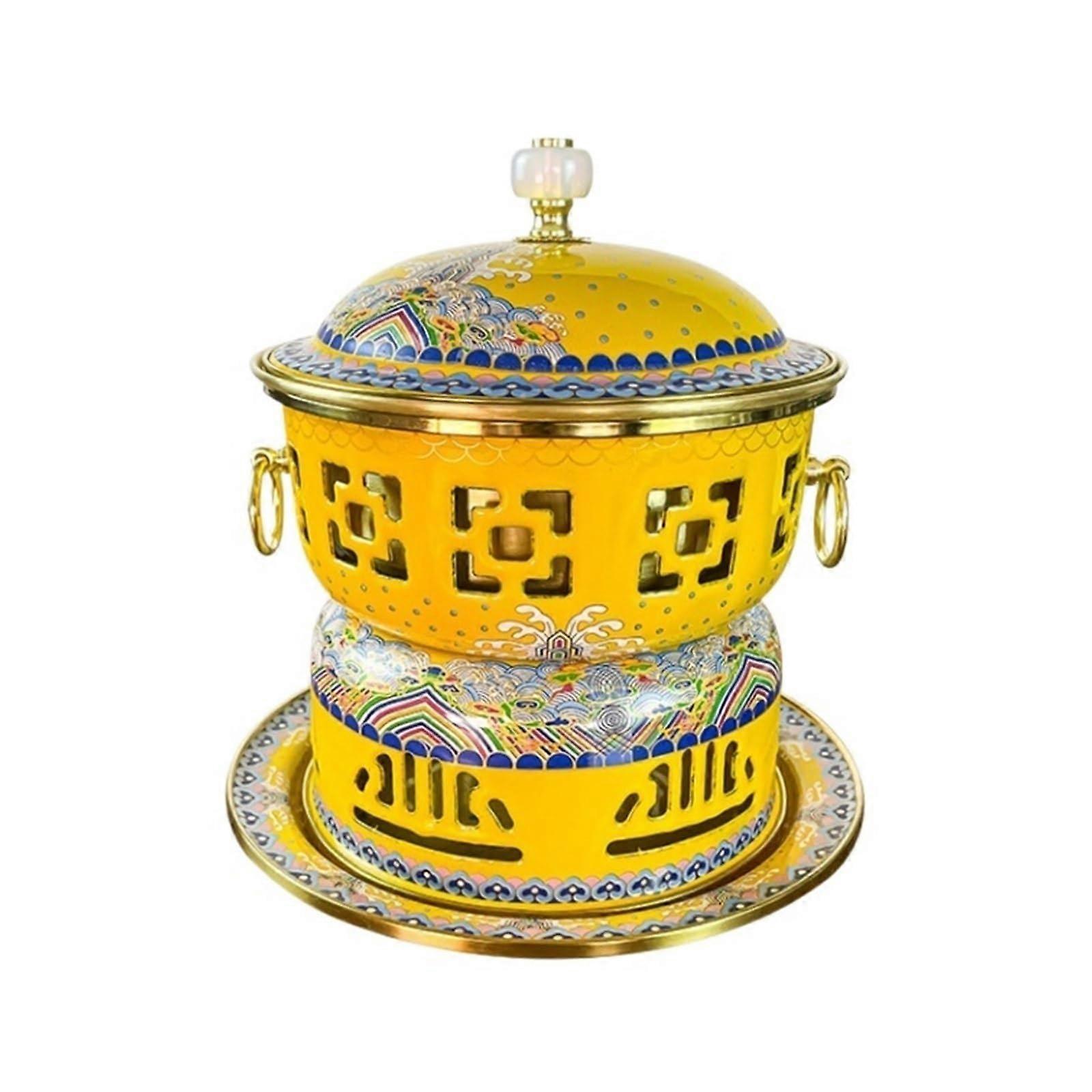 Copper Hot Pot Traditional Chinese Style Vintage Charcoal Shabu Soup Pot with Detachable Design, Yellow 22x22cm