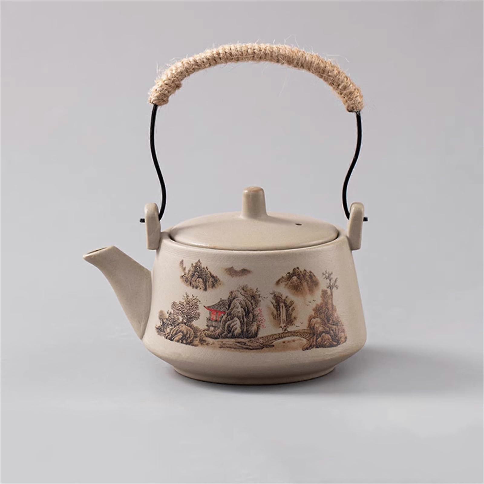 Ceramic Tea Kettle with Vintage Insulated Handle, Large Capacity HeatResistant Design