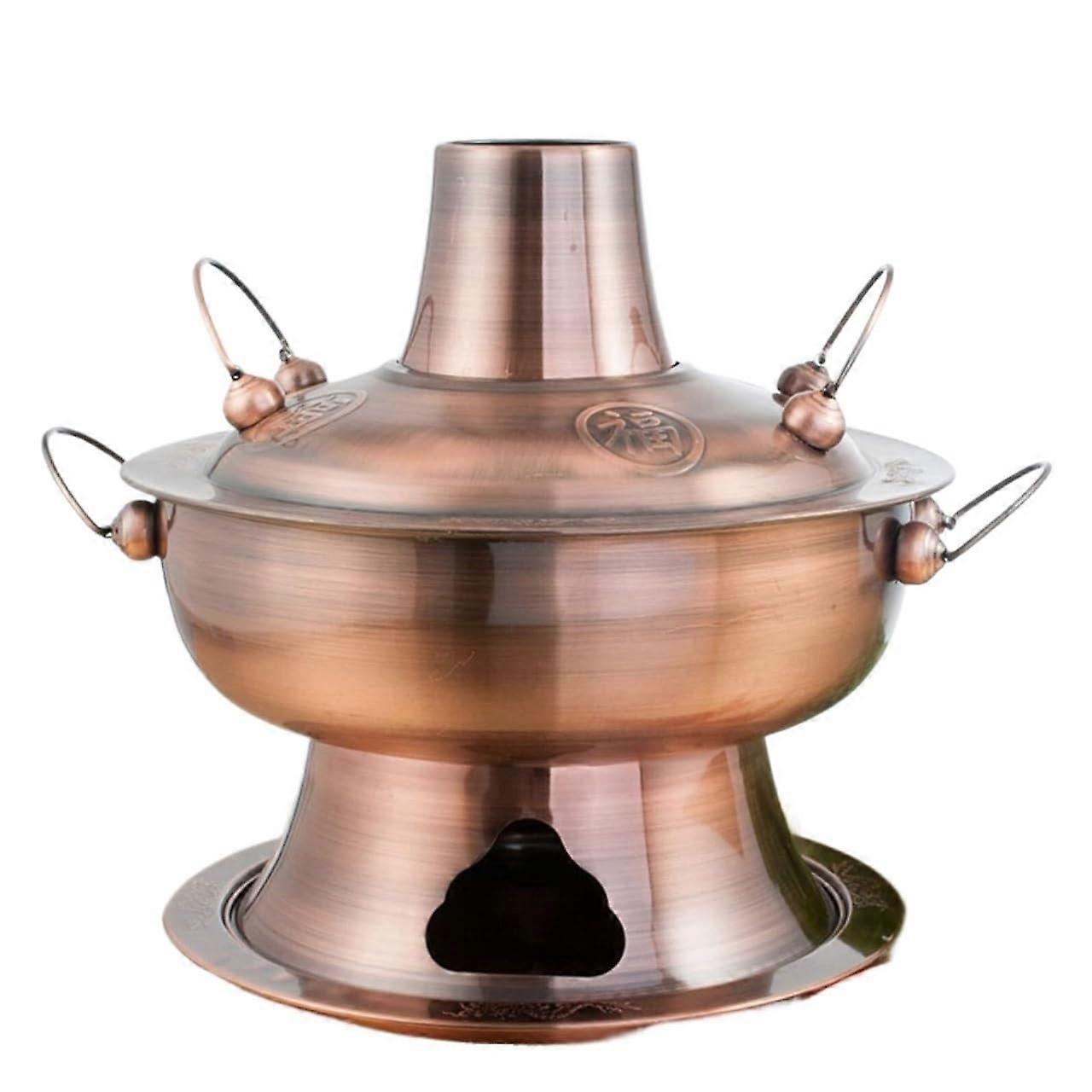Chinese Charcoal Hot Pot with Stainless Steel, Detachable Easy Clean, Outdoor and Home Use Gold 34CM