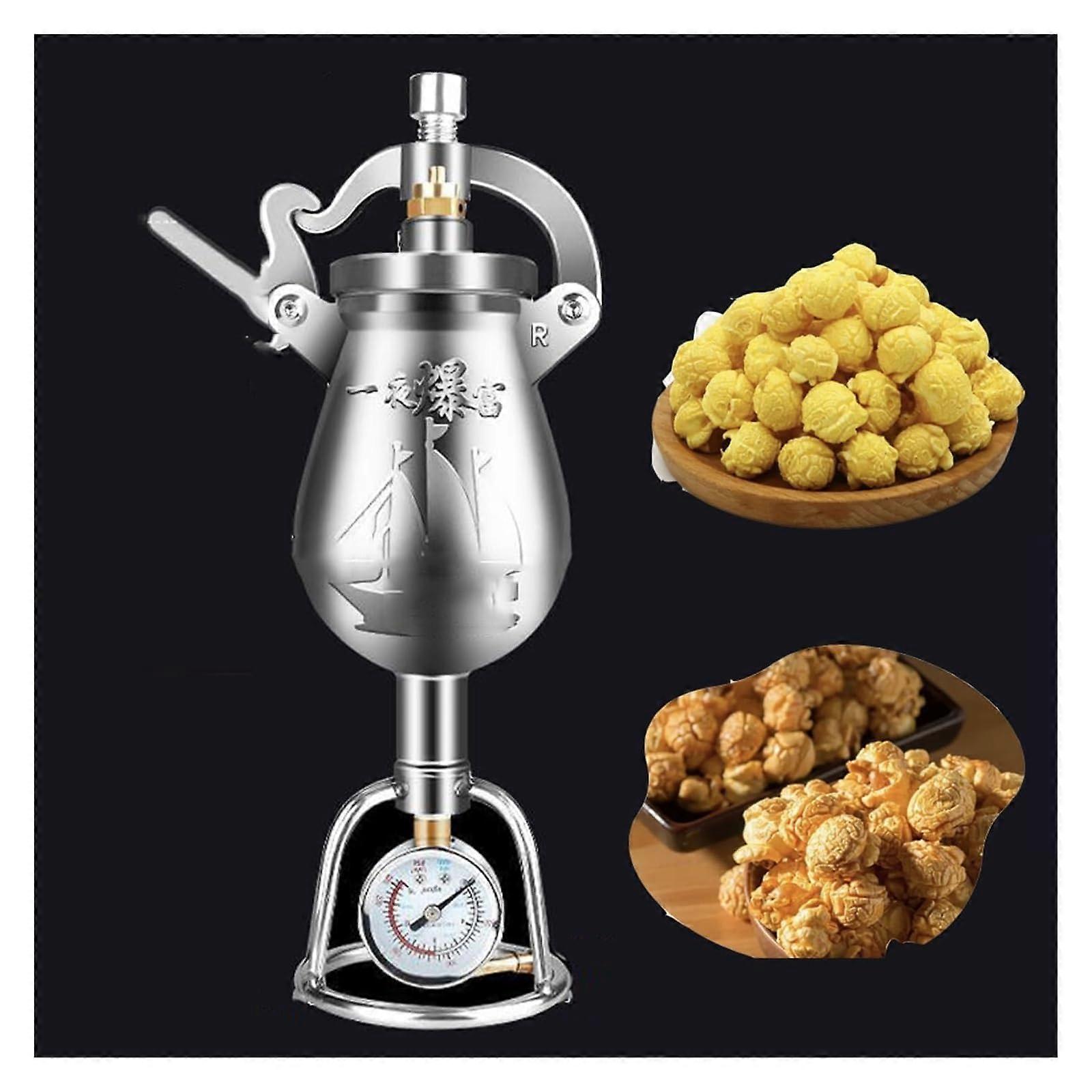 Stainless Steel Popcorn Maker with Pressure Gauge, Relief Valve and Hand Crank Thickened Pot