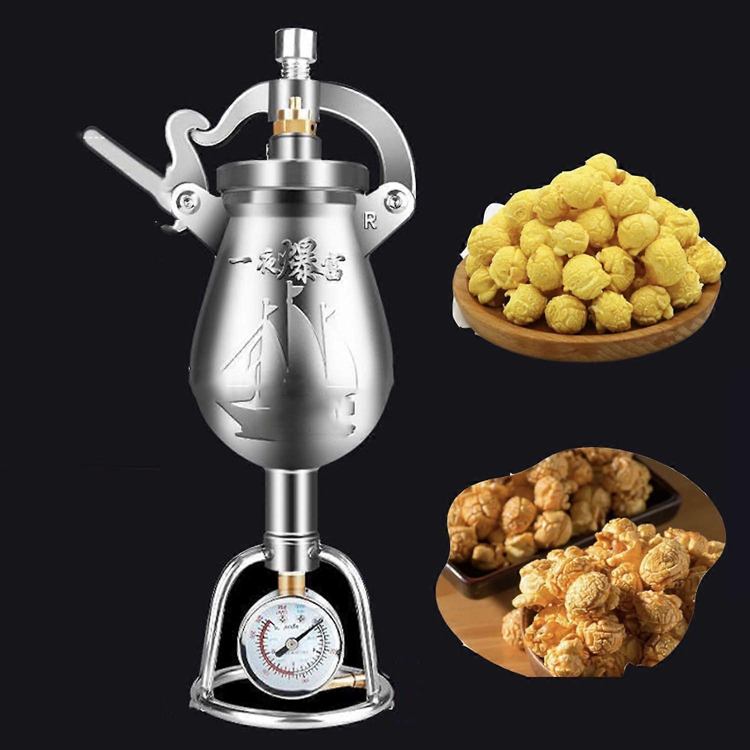 Retro Popcorn Machine with Pressure Gauge, Hand Crank Stainless Steel Popcorn Maker for Home Use