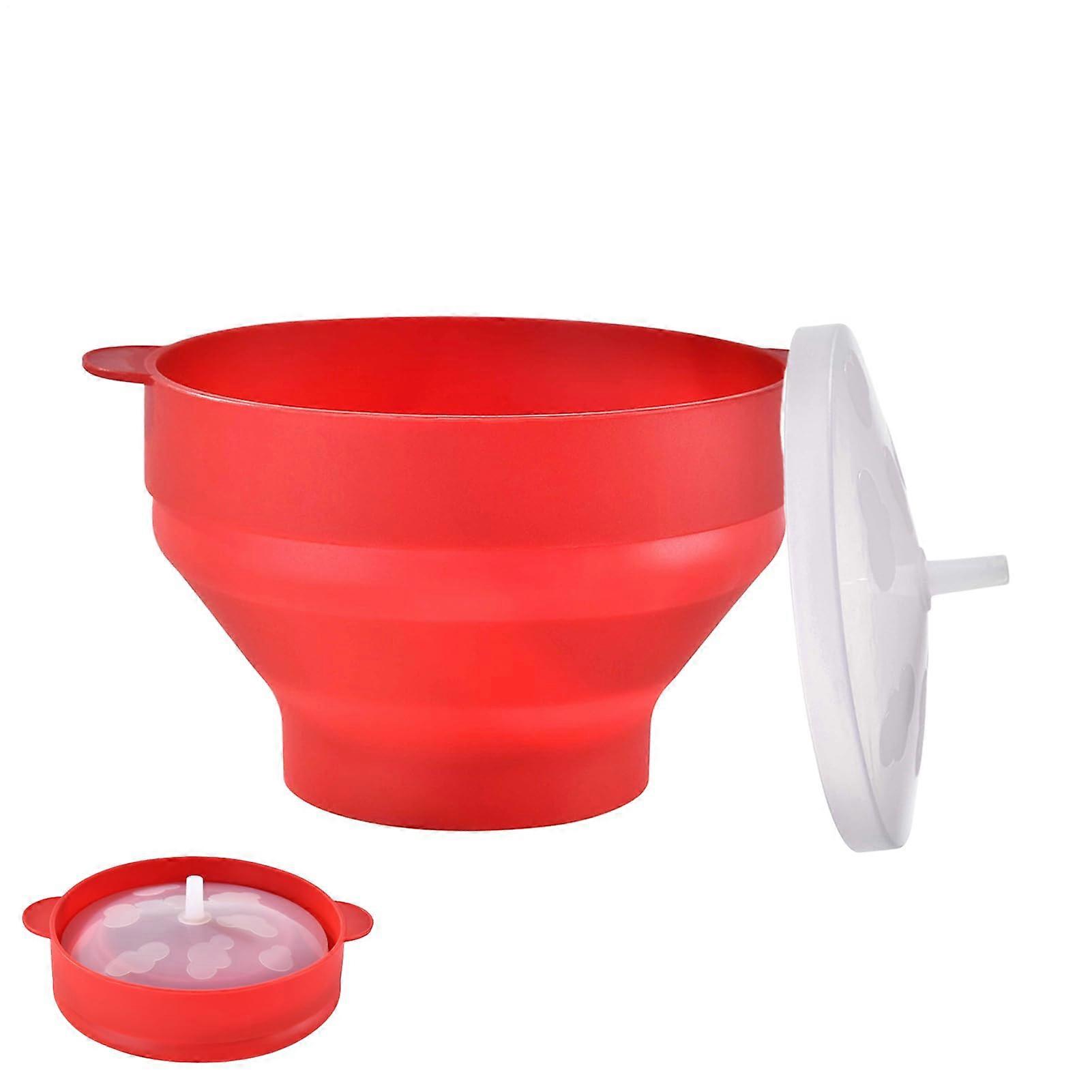 Microwave Popcorn Maker, Collapsible HeatResistant Silicone Bowl with Lid and Measuring Lines, Red