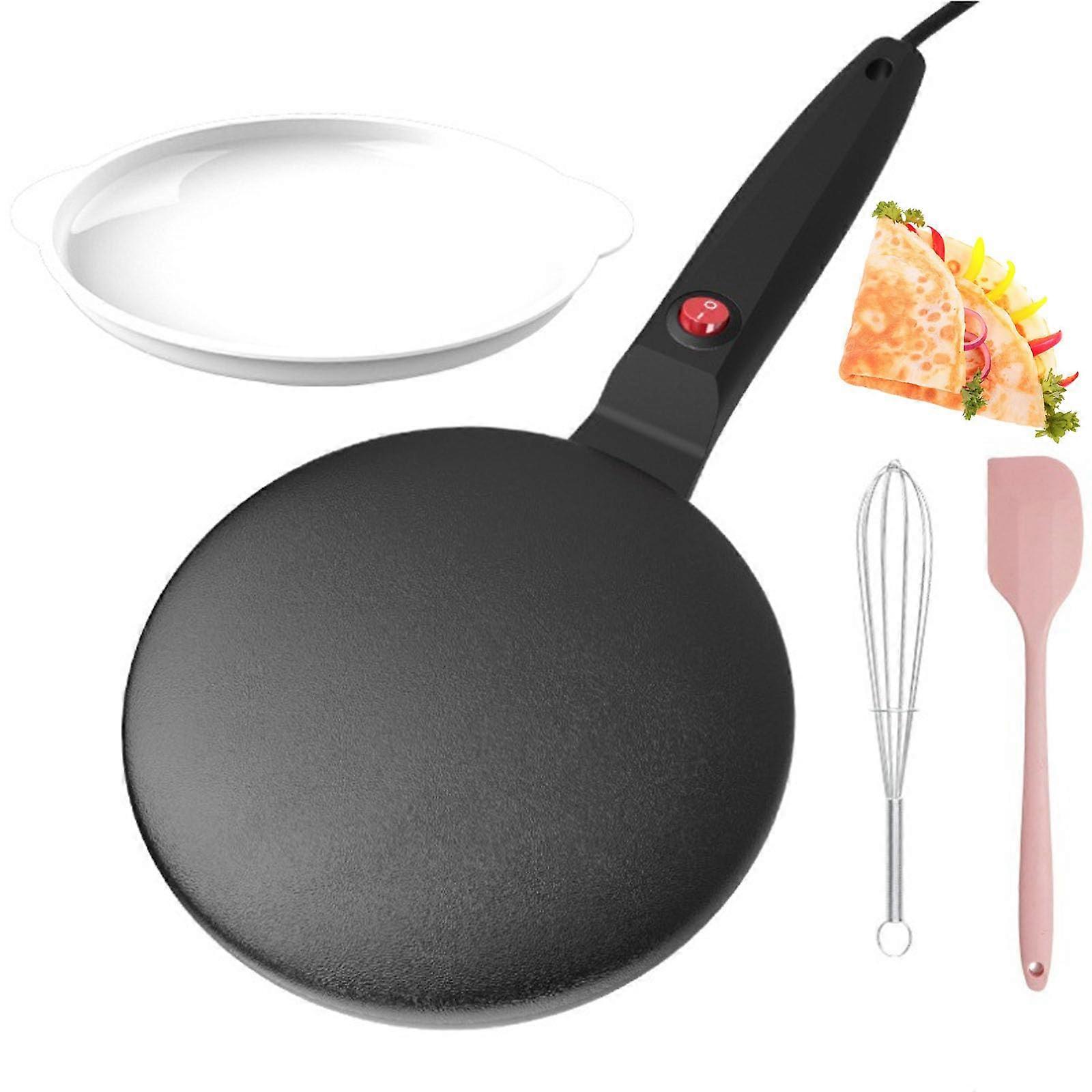8inch nonstick pan for versatile breakfasts including pancakes, tortillas and eggs; includes a batter bowl for easy preparation. 600W power with an automatic thermostat and overheat protection for safe cooking; quick preheat means batter is ready in minutes. Ergonomic design with a long antiscald handle for safety and comfort; lightweight and portable for easy onehanded operation; simple ON/OFF switch for hassle use. Sturdy metal construction with antislip feet for stability during use; supports evenly cooked meals for the whole family. Use scenarios Quick weekday breakfast for a small family, preparing pancakes, eggs or tortillas in minutes. Compact kitchen, dorm room, or studio apartment where space is limited and portability matters. Weekend brunch or snack prep, making multiple items at once with stable, easy handling.