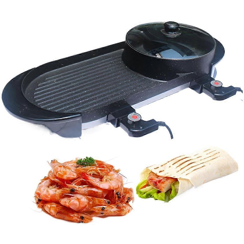 2 in 1 Electric Hot Pot and Grill Combo with Dual Cooking Modes and Separable Design for ShabuShabu BBQ