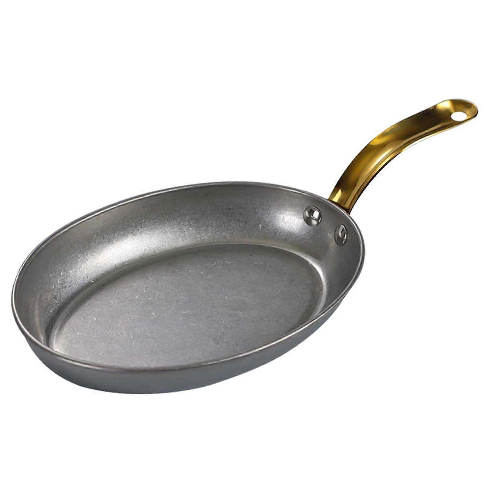 Stainless Steel Oval Paella Pan 18cm Non Stick Single Handle for Seafood Home and Restaurant Cooking