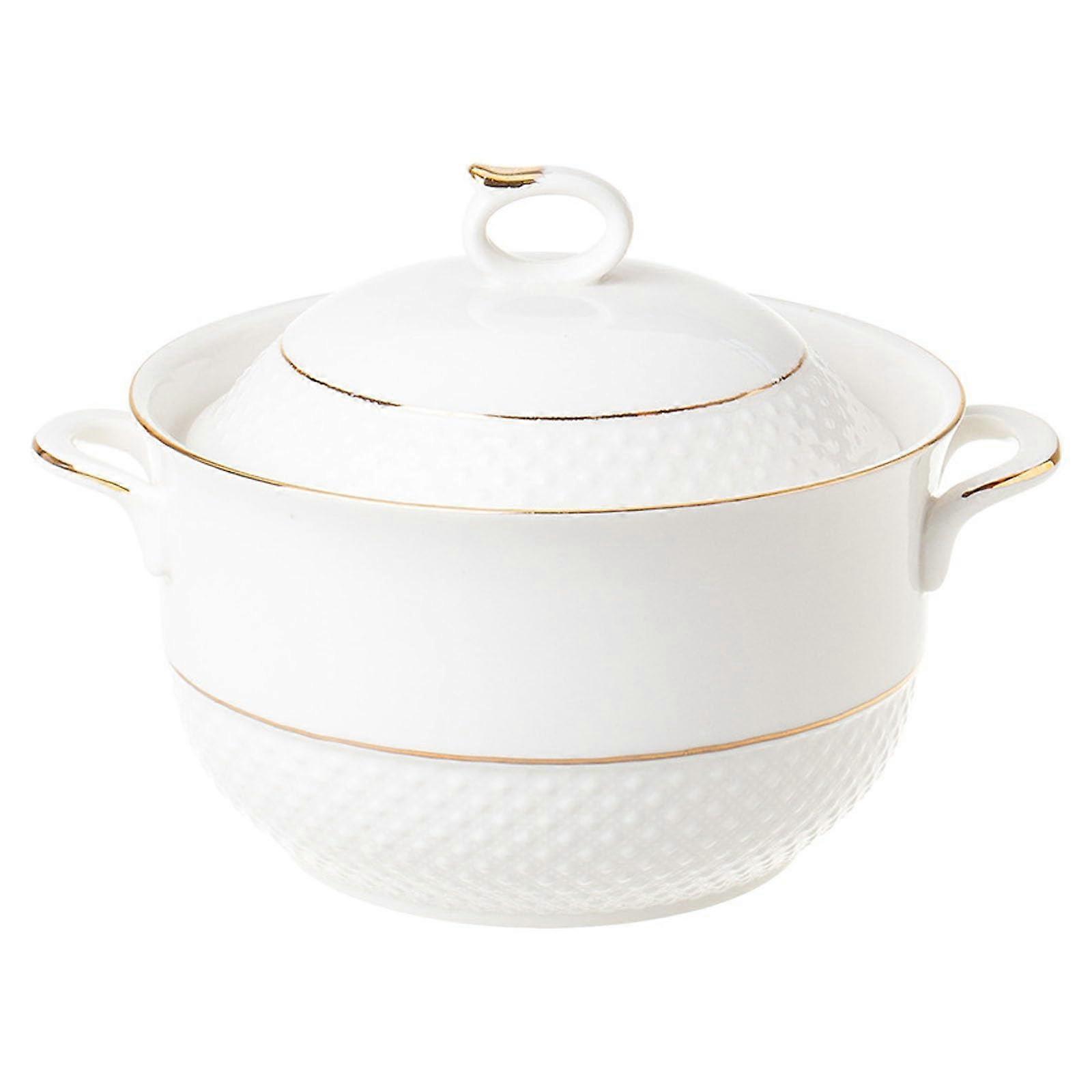 Material and finish: Ceramic construction with an innovative reactive glaze. The piece is heat resistant, nonslip, beautiful, and durable. Large capacity and compatibility: Pure white, threedimensional design that is ideal for braising. Suitable for microwave ovens, ovens, dishwashers, and sterilizers. Note: Open flames are prohibited. Exquisite design: Double handle design inspired by traditional Chinese and Japanese stew pots, combining practical use with classic style. Versatile and decorative: Suitable for soup, stew, noodles, pasta, fruit, salad, and more. Embossed square patterns add a beautiful and elegant touch, making it a practical decoration for kitchens, parties, homes, and restaurants. Use scenarios: Braising and serving family meals: for slow braising and presenting meals at the table. Reheating and daily use: Convenient for reheating soups or stews in microwave or oven; easy cleanup in dishwasher or sterilizer. Table presentations: Suitable for serving noodles, pasta, fruit, or salads, while the decorative pattern enhances table setting for homes, parties, or restaurants.