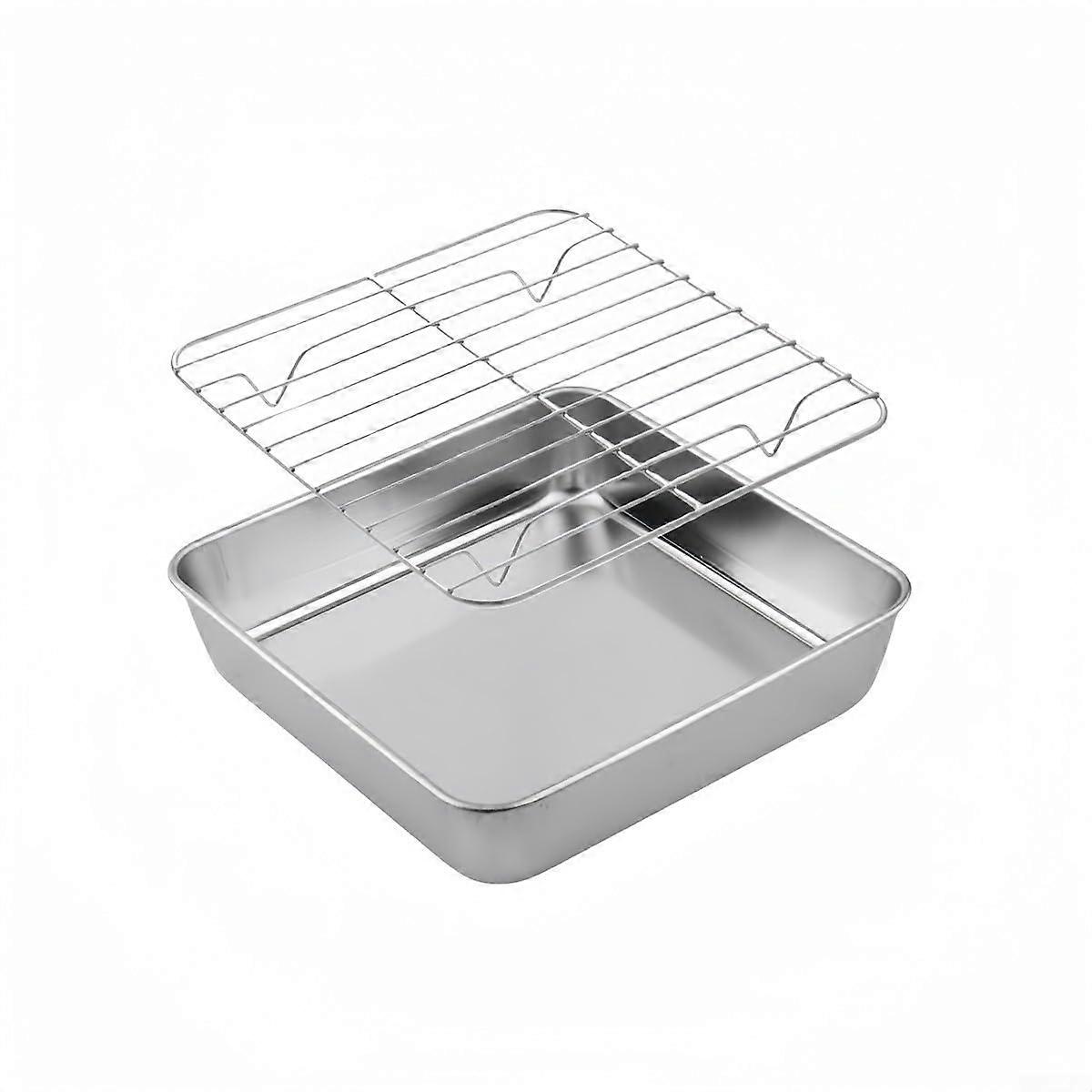 Stainless Steel Baking Pan with Cooling Rack, Square Roasting Tray for Turkey, Chicken, Vegetables, Oven Safe, Dishwasher Friendly, 20cm