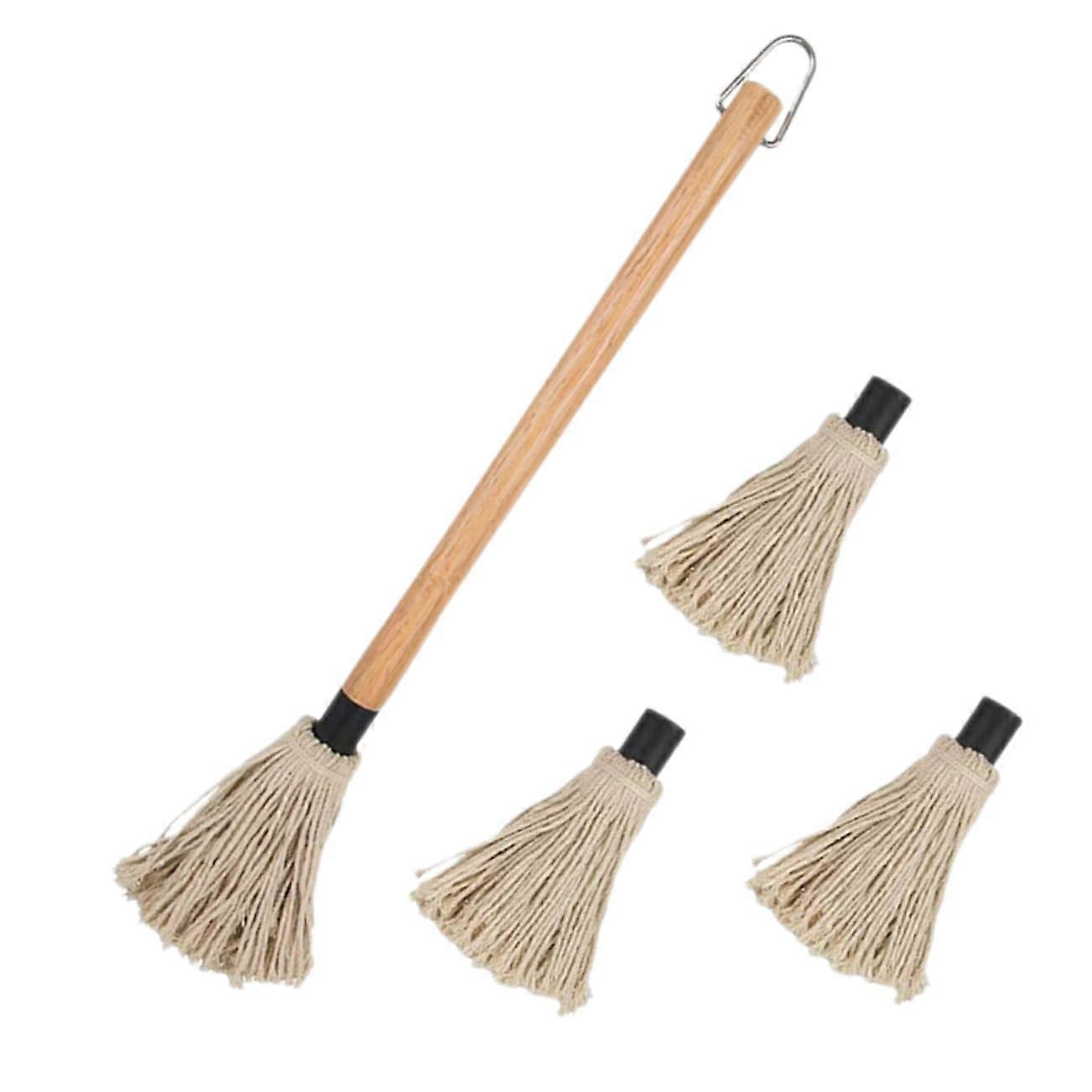 BBQ Basting Mop with Long Wooden Handle, Heat Resistant Cotton Bristle Sauce Brush for Grilling
