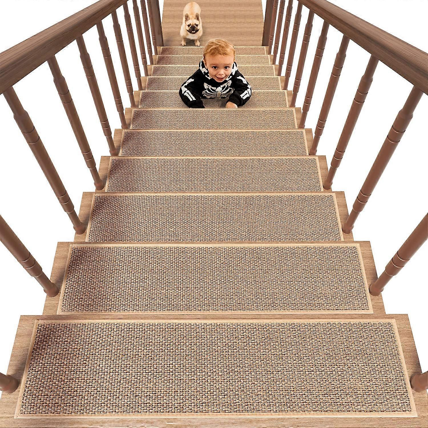 Rubber Backing Stair Treads Sturdy nonadhesive antislip backing uses luxury rubber to grip stairs without any tape. No extra tape is needed for stairs used by kids, elderly parents, and pets. It sticks securely to wooden, tile, and marble surfaces, keeping the treads in place and protecting your stairs. Residue Unlike adhesive tapes, these rubberbacked stair treads remove cleanly without damaging the stair surface. No extra steps are required—simply clean the stair and place the treads. Durable and Washable Featuring a dense weave, the rubber backing stair runner holds up well after repeated machine washing and drying. The treads are fade, stain, shrink, and wrinkle resistant, maintaining their appearance over time. Protection The rubber stair treads for wooden steps provide strong protection for the stair surface, helping preserve paint and prolong the life of the stairs while reducing the risk of slips for family members. Use scenarios In a family home with kids and pets, these treads reduce slipping on stairs and provide traction on everyday traffic. For homes with elderly or mobilityimpaired residents, they offer added stability and fall prevention without permanent installation. In rental properties or spaces where you don't want to modify stairs, these nondamaging treads are easy to install, remove, and relocate without leaving residue or marks.