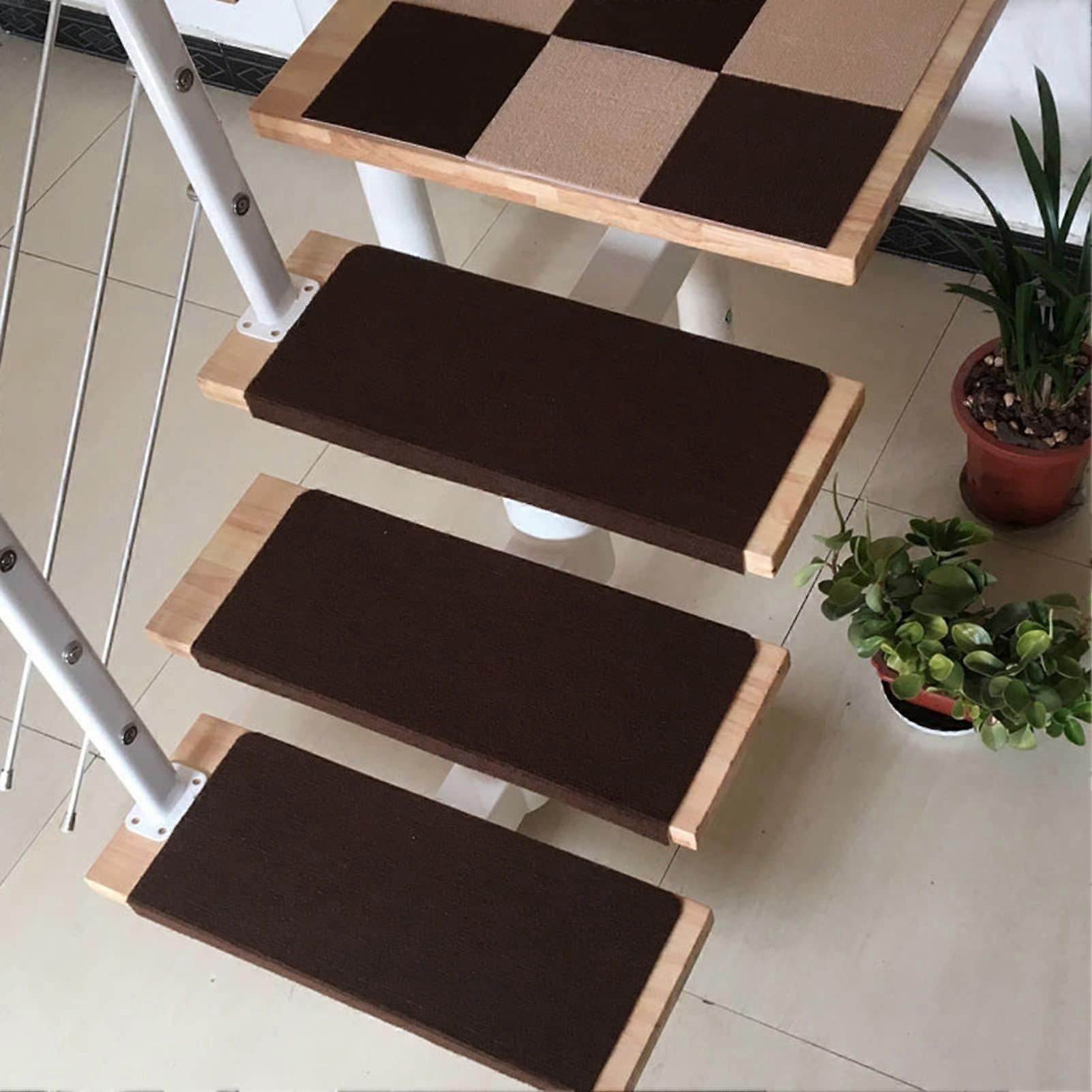 Carpet Stair Treads Non Slip Self Adhesive Washable Stair Mats Indoor Soft Durable Polyester 5pcs Brown 22x50cm