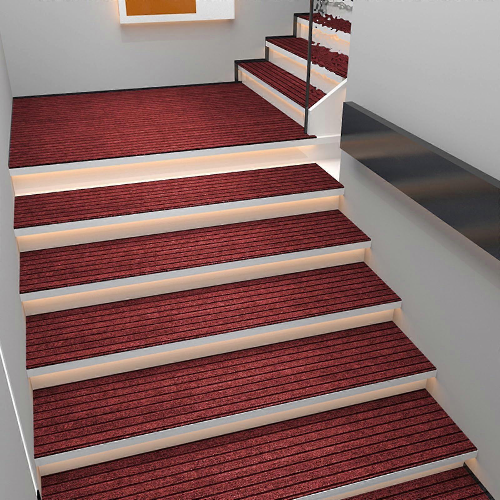 Non Slip Stair Treads Carpet Set Reusable Washable Rugs for Indoor Outdoor Wooden Steps Red 5pcs