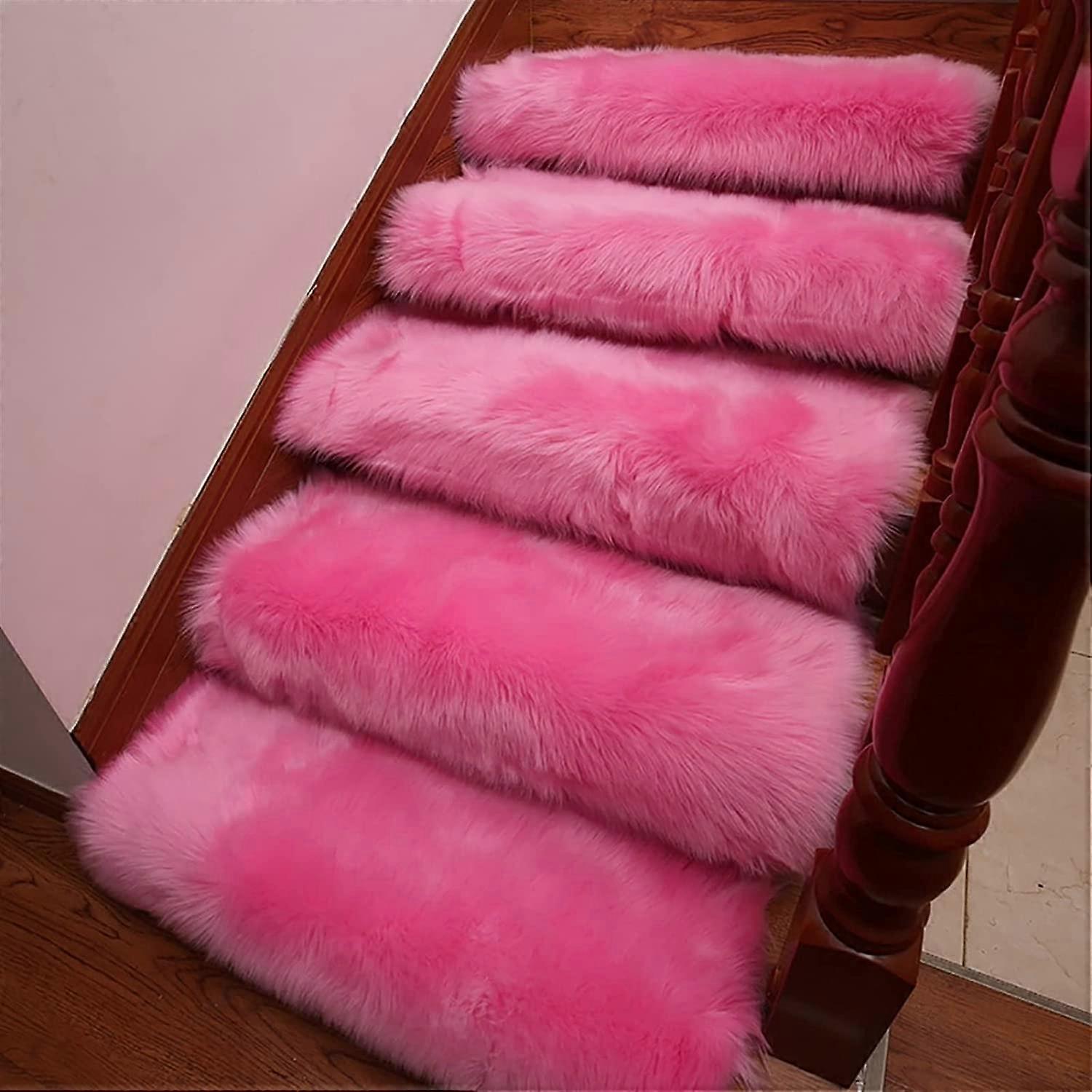 Pink Plush NonSlip Carpet Stair Treads with SelfAdhesive Easy Install for Indoor Safety