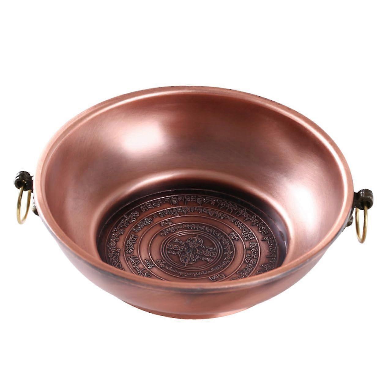 Handmade Copper Offering Bowl with Intricate Carving, Vintage Ritual Plate for Temple Worship