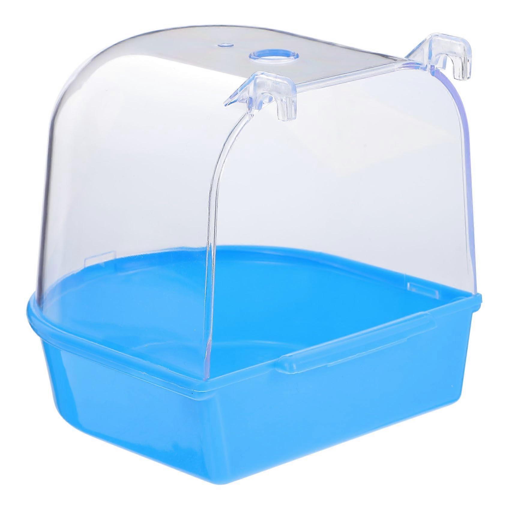 Blue Covered Bird Bath Cage for Canary and Parrot, Easy Clean Plastic Fits Multiple Cages