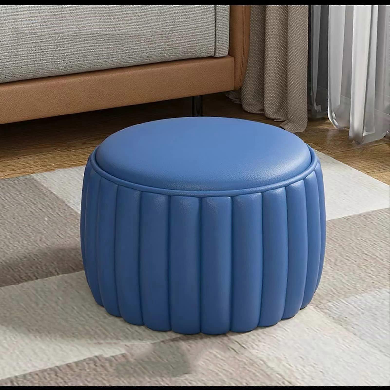 Round PU Leather Footstool Ottoman – Tufted, Waterproof, AntiSlip, No Assembly for Living Room Bedroom