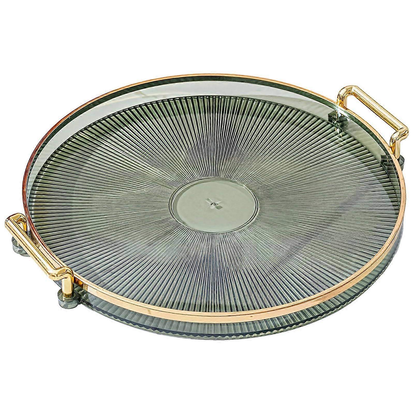Green Round Serving Tray with Gold Handles, Decorative Vanity Tray for Kitchen, Bathroom, Snacks
