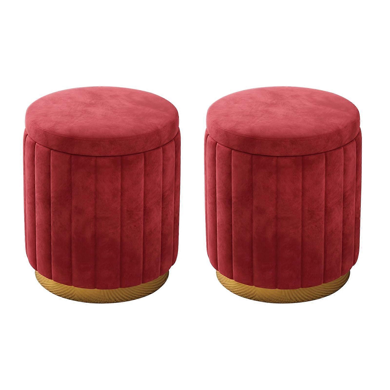 Set of 2 Velvet Storage Ottoman with Large Hidden Space, Gold Metal Base Round Footstool for Bedroom