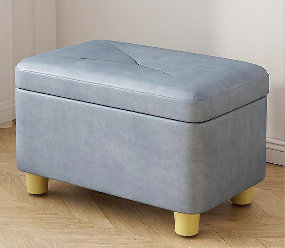 Large Blue Tufted Storage Ottoman Bench with Hidden Storage, Faux Leather, Padded Seat, Hinged Lid