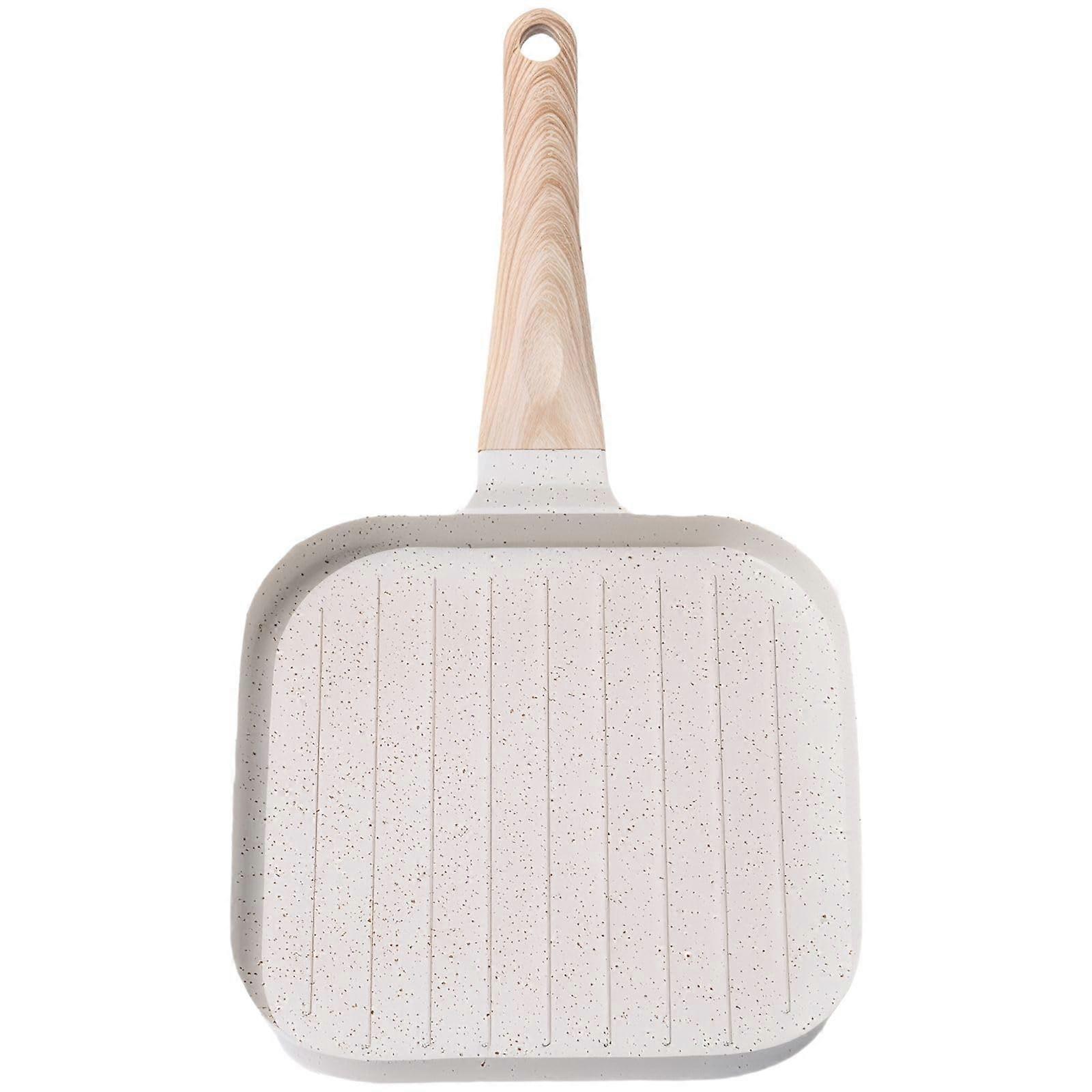Non Stick Grill Pan with Even Heat Distribution, Ceramic Square Design, Raised Ridges, White