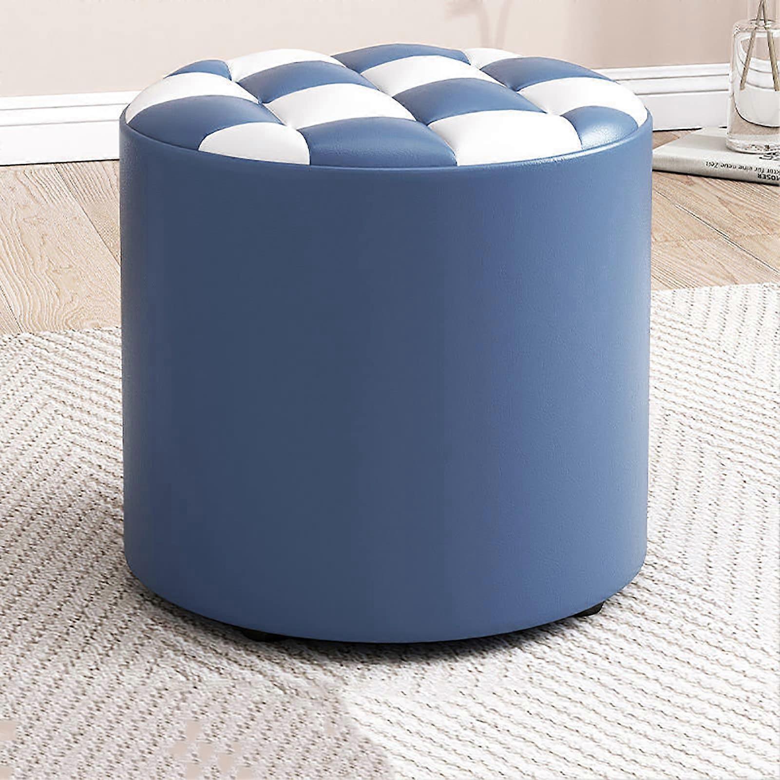 Vanity Stool Round Footrest Waterproof PU Leather Tufted Ottoman with Wood Frame for Bedroom