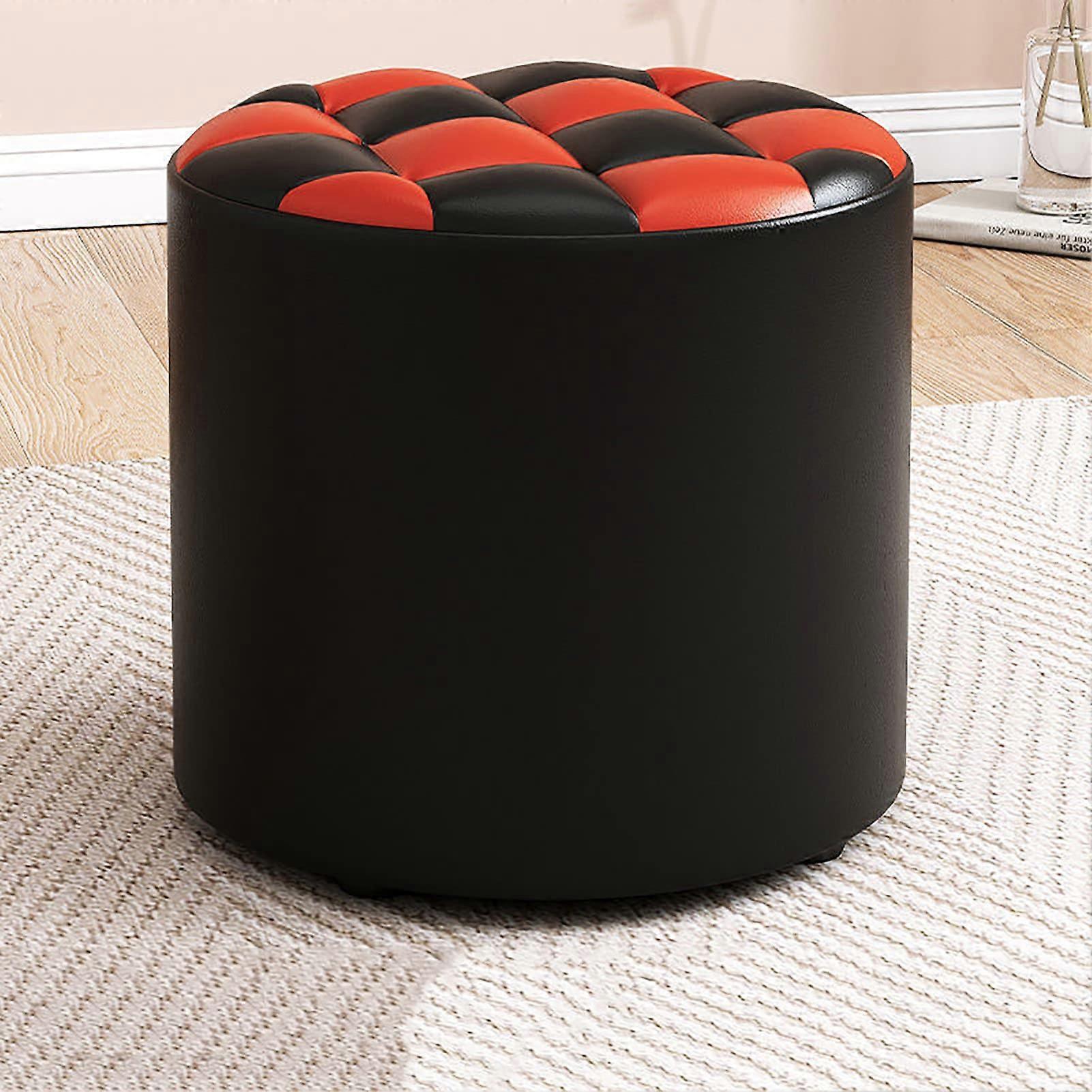 Round Upholstered Vanity Stool with Waterproof Leather, Tufted Footrest Ottoman for Living Room